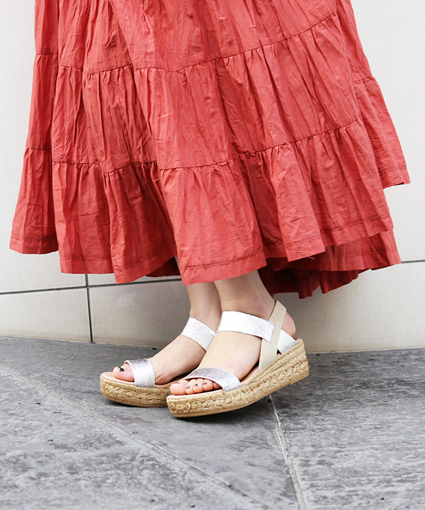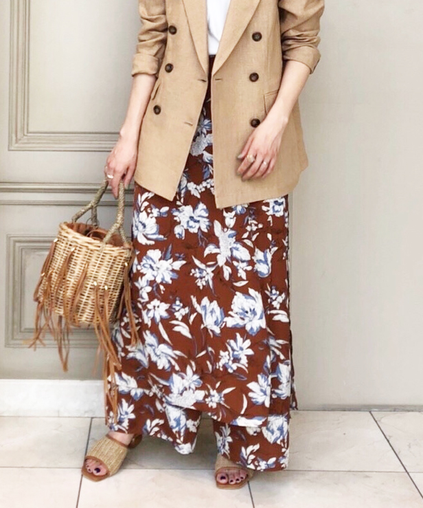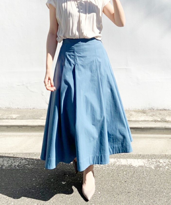 フロントに4か所、バックに2か所のタックを入れることで、贅沢なフレアシルエットを演出。大人フェミニンやきれいめカジュアルスタイルのボトムス提案に最適な1枚。