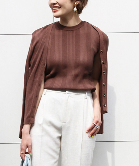AubeLで大人気の変則リブシリーズが今シーズンも登場。ランダムなピッチのリブが入っていることで、動きのある1枚に。