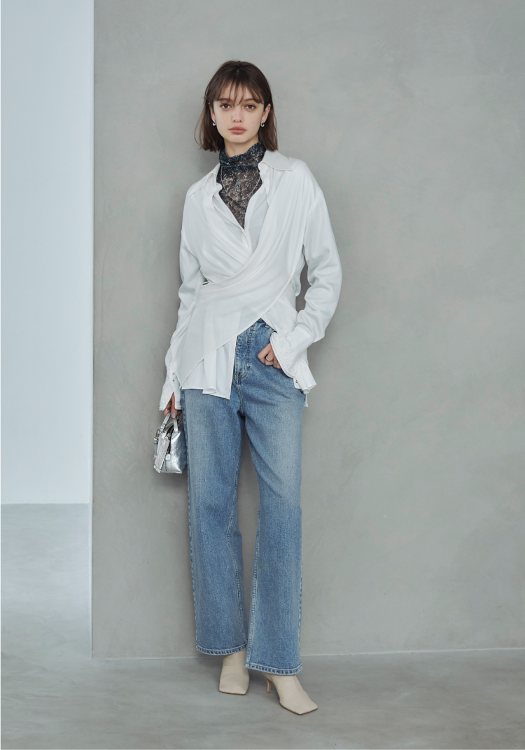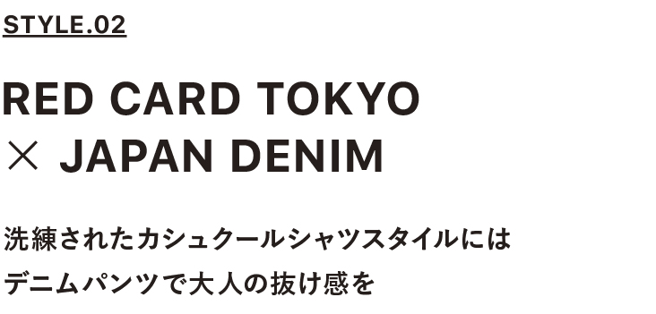 PANTS / ¥23,100 : RED CARD TOKYO×JAPAN DENIM – SHIRT / ¥39,600 : MURRAL CUTSEW / ¥20,900 : near.nippon PIERCE / ¥46,200 : TOM WOOD NECKLACE / ¥19,800 : PHILIPPE AUDIBERT RING / ¥66,000 : TOM WOOD RING / ¥42,900 : TOM WOOD BAG / ¥31,900 : GIANNI CHIARINI SHOES / ¥47,300 : PIPPICHIC