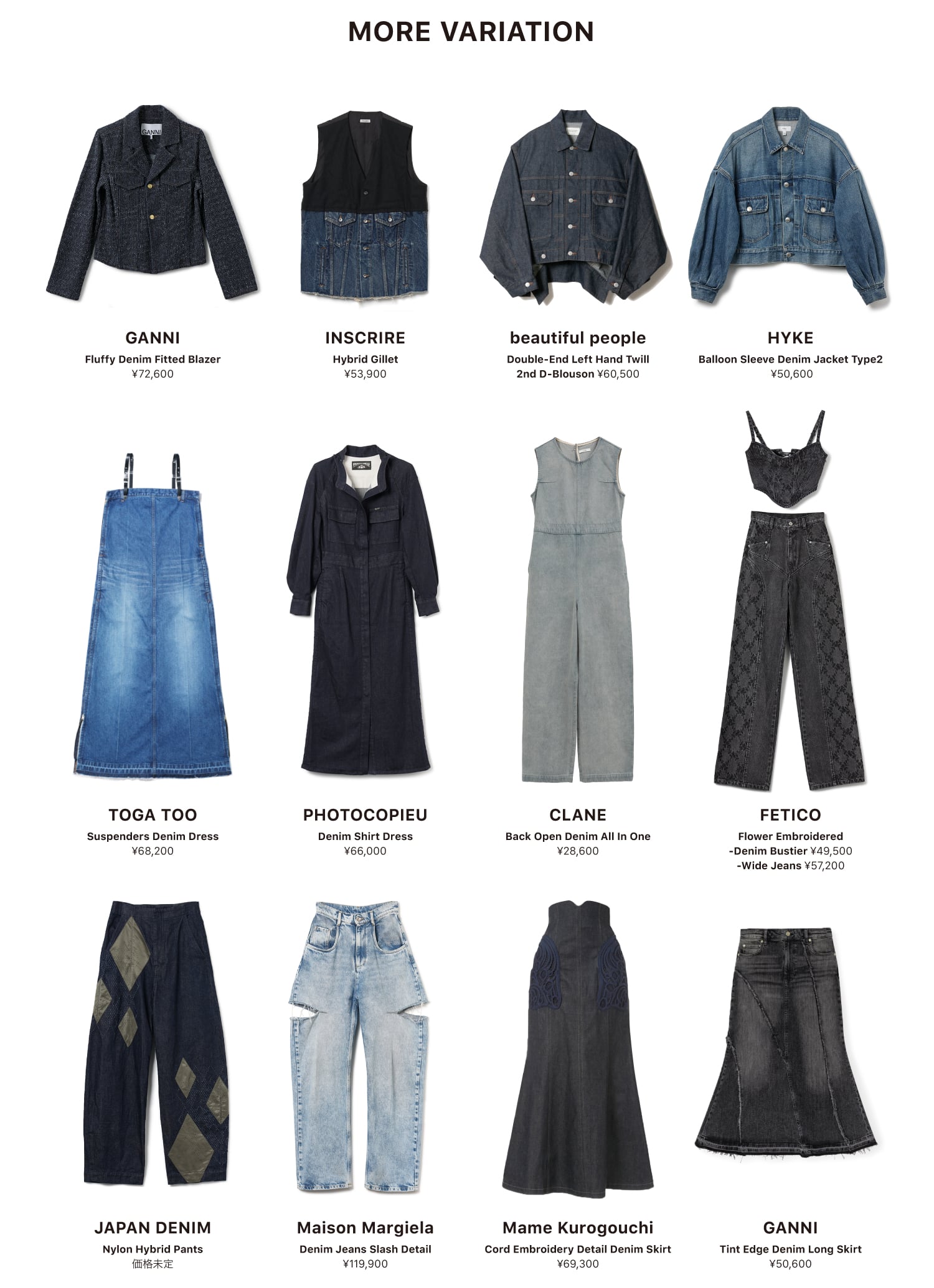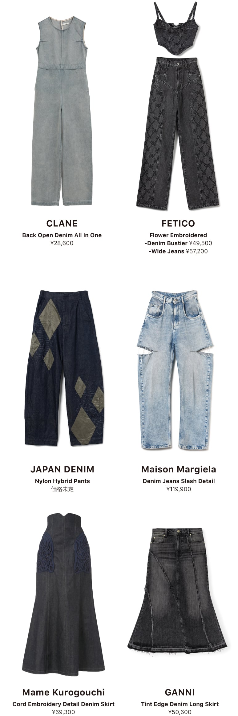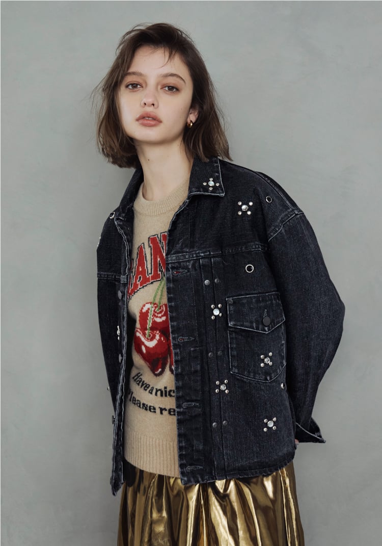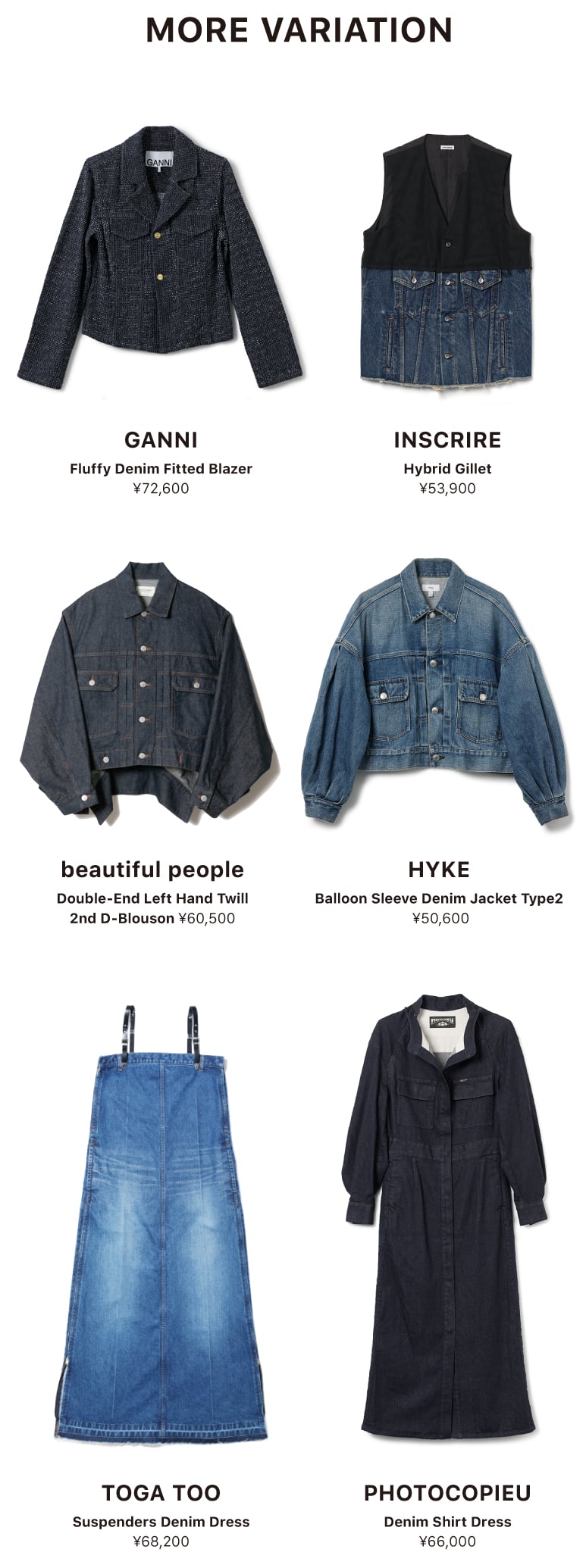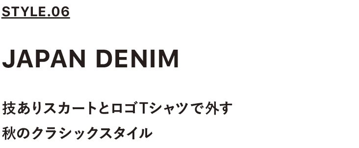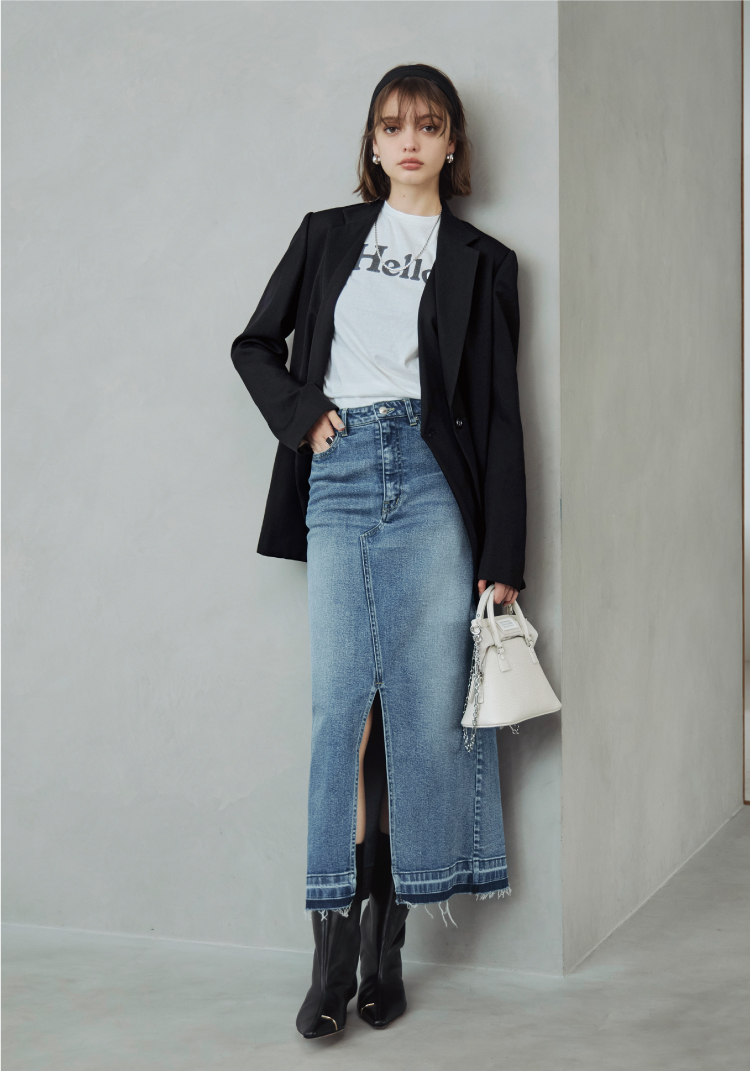 SKIRT / ¥35,200 : JAPAN DENIM – JACKET / ¥93,500 : UJOH CUTSEW / ¥27,500 : MADISONBLUE PIERCE / ¥48,400 : TOM WOOD NECKLACE / ¥19,800 : PHILIPPE AUDIBERT BAG / ¥280,500 : Maison Margiela SHOES / ¥47,300 : HENRI EN VARGO