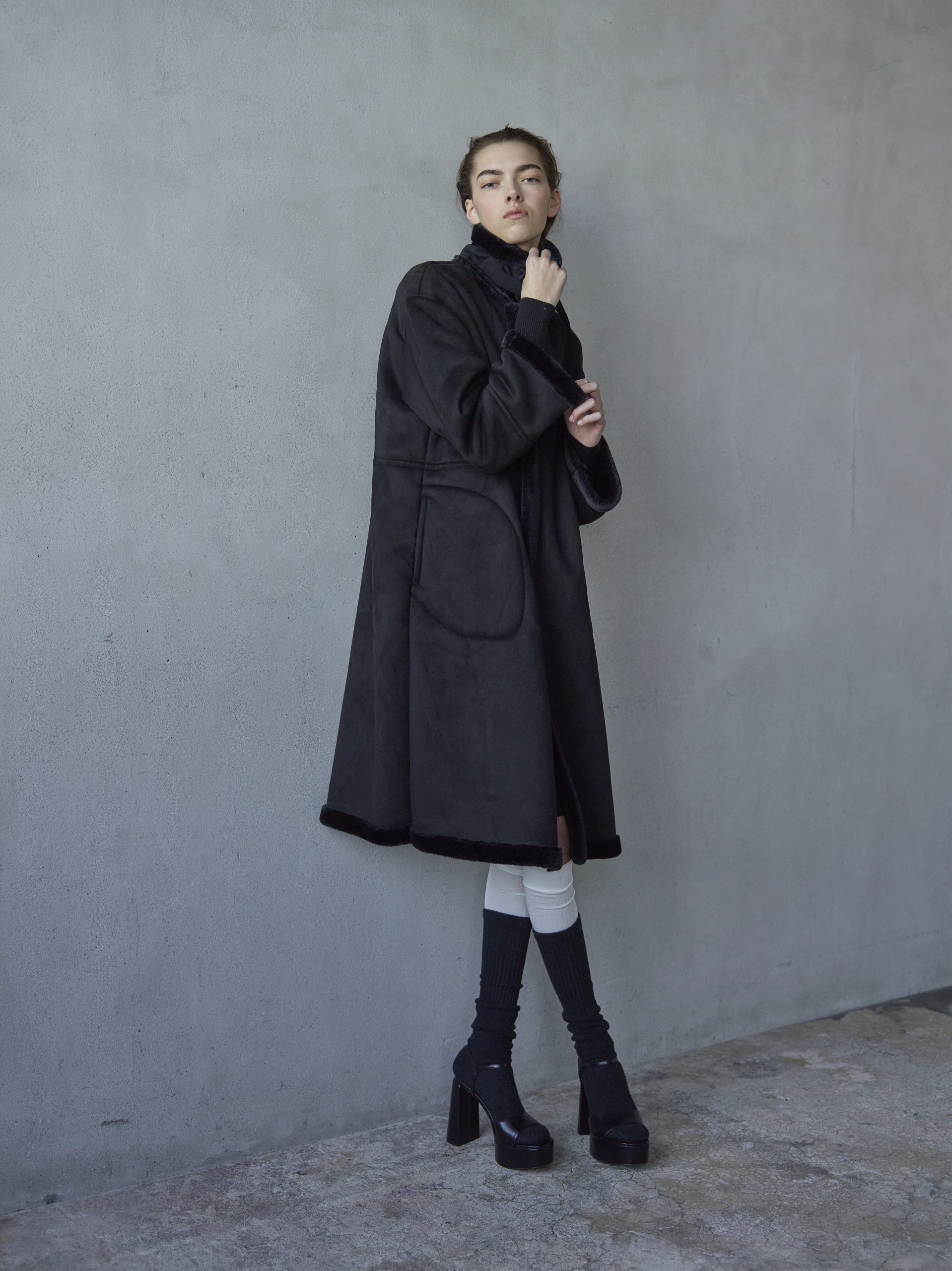 さらに計算されたパターンメイキングはまさに才色兼備なアウター。