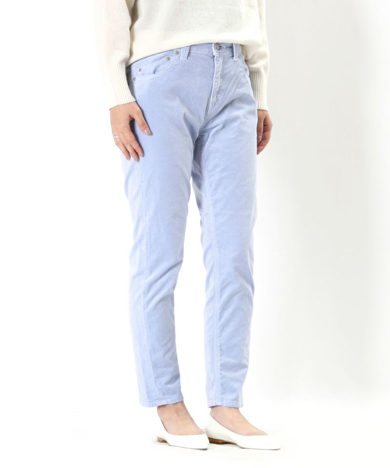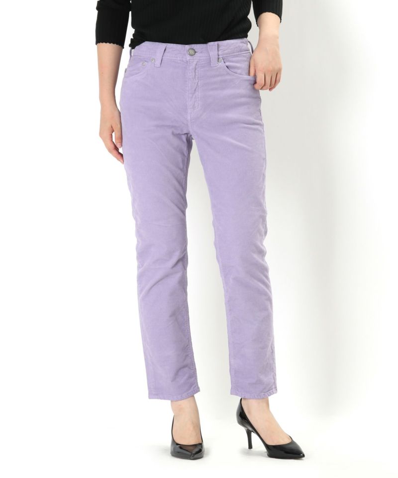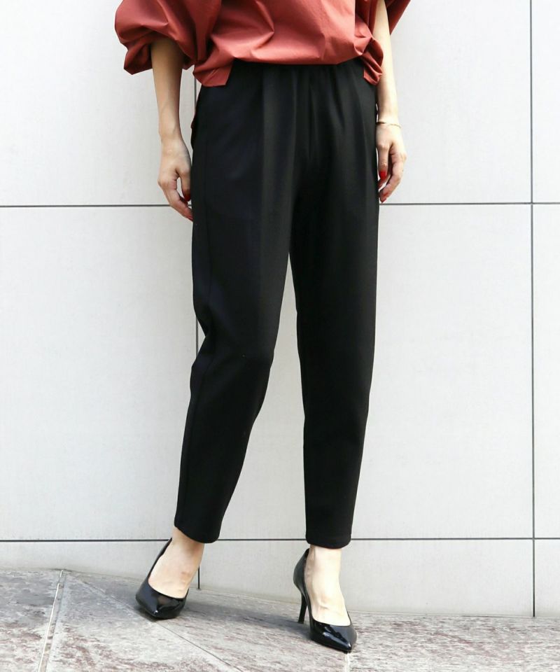 膝から裾に向かってゆるやかに細くなっているテーパードラインに、どんなシューズともバランス良く馴染む九分丈。