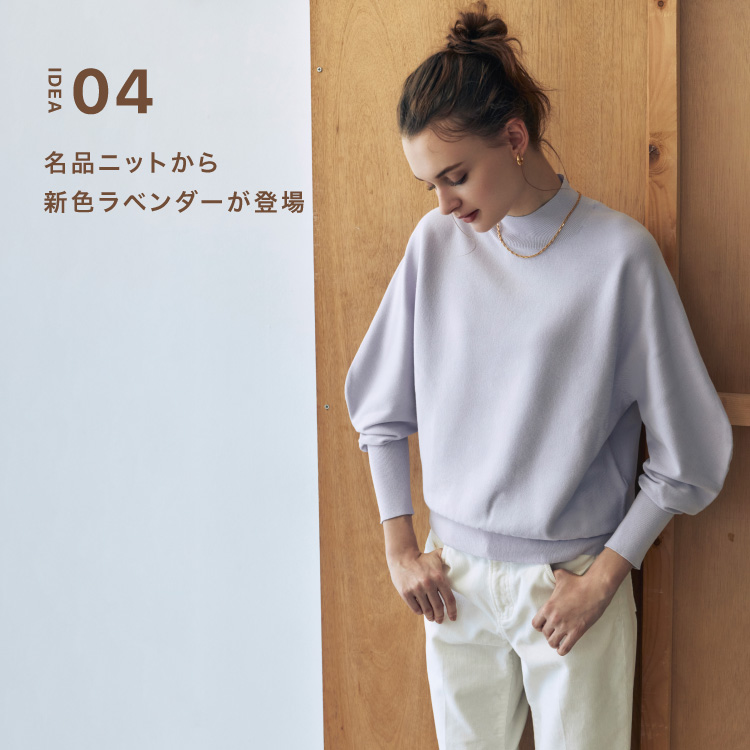 美しい立体的なドルマンスリーブが女性らしさを演出してくれる名品ニットが今年も登場。新色のラベンダーと、ベーシックカラーのベージュとブラックの3色展開。
