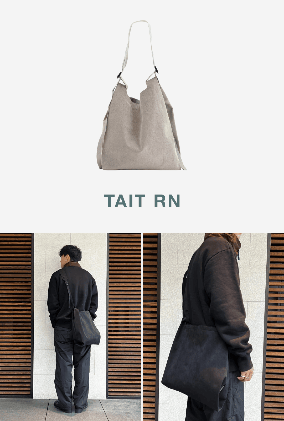 実用性とファッション性を兼ね備えたマイクロファイバースエード素材は、おうちで簡単に洗えるのが嬉しいポイント。アシンメトリーなハンドルがユニークなデザインを演出し、ハンドルのアレンジでお好みの形状にカスタマイズ可能です。