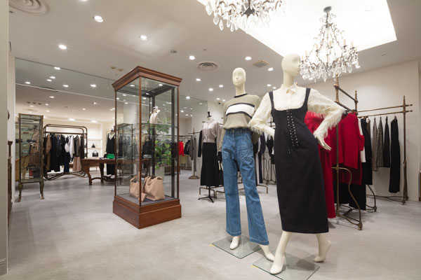 更に広くなった店内には、Chloe(クロエ)、STELLA McCARTNEY(ステラ マッカートニー)をはじめ、国内でも人気の高いHYKE(ハイク)、Mame Kurogouchi(マメクロゴウチ)、CFCL(シーエフシーエル)などのブランドを展開。