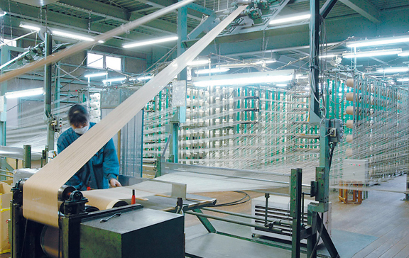 坂本デニムは1966年(昭和41年)に国産初の経糸連続染色方法の開発に成功しました。これによって、国産デニムの製造が可能になり、今日の隆盛を築くきっかけになりました。