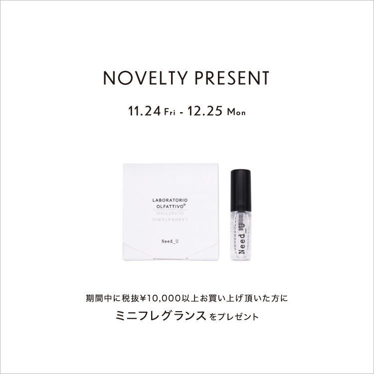 また、期間中LABORATORIO OLFATTIVO(ラボラトリオオルファティーボ)の商品を税抜き¥10,000以上お買い上げ頂いた方にミニフレグランスをプレゼント。