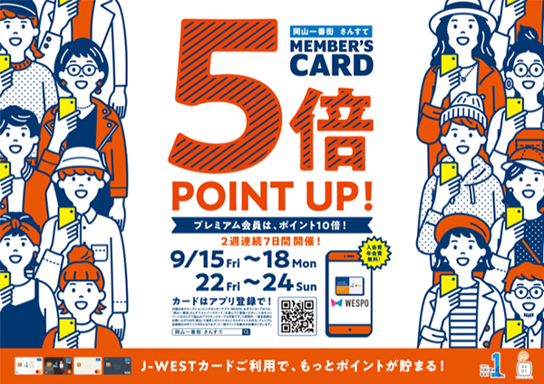 岡山一番街・さんすてにて、メンバーズカード5倍ポイントアップキャンペーンを開催いたします。