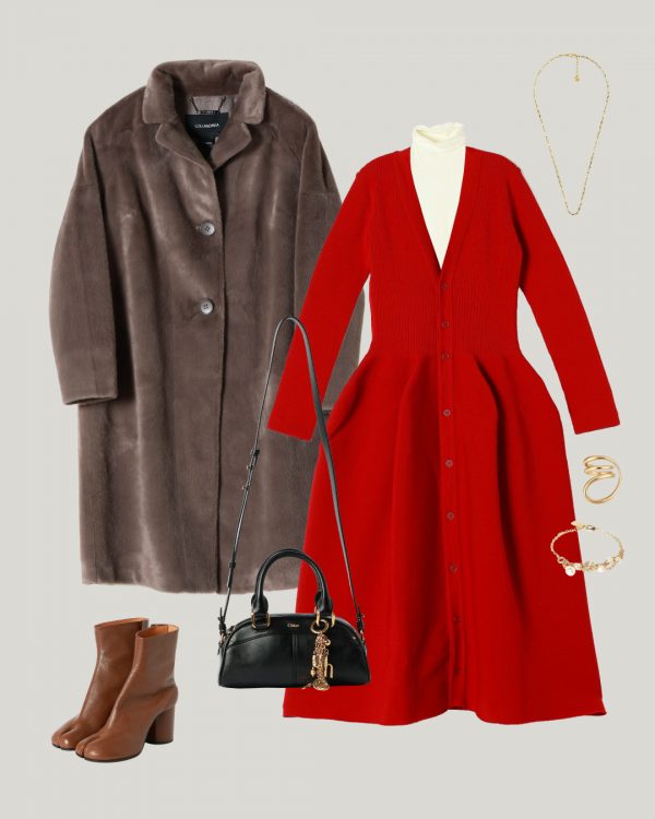 パールボタンのジャケットやフラワー刺繍のシアートップスで、ダークトーンのコーディネートにも華を添えて。特別な日も気分の上がるスタイルで記憶に残したい。