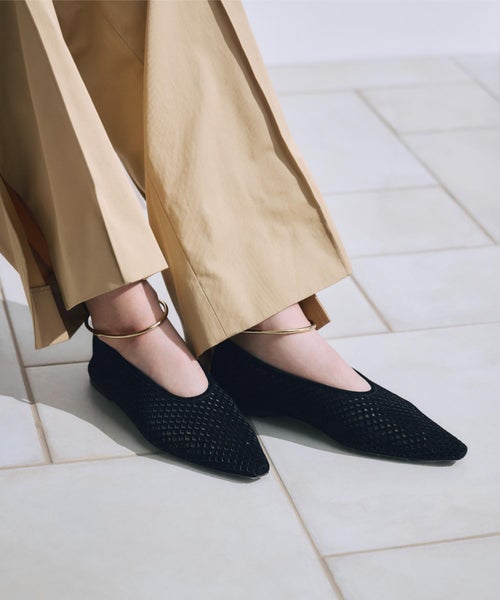 ブラックドレスにフェード感のあるデニムシャツを重ね、軽やかなコントラストを演出。インナーのシアートップスでさりげない抜けを添え、足元はポインテッドトゥで全体をシャープに引き締める。異なる質感が織りなす抜け感のあるバランスが、春らしい洗練を引き立てる。