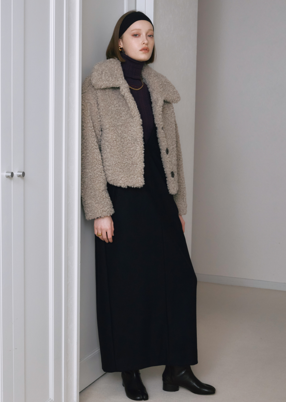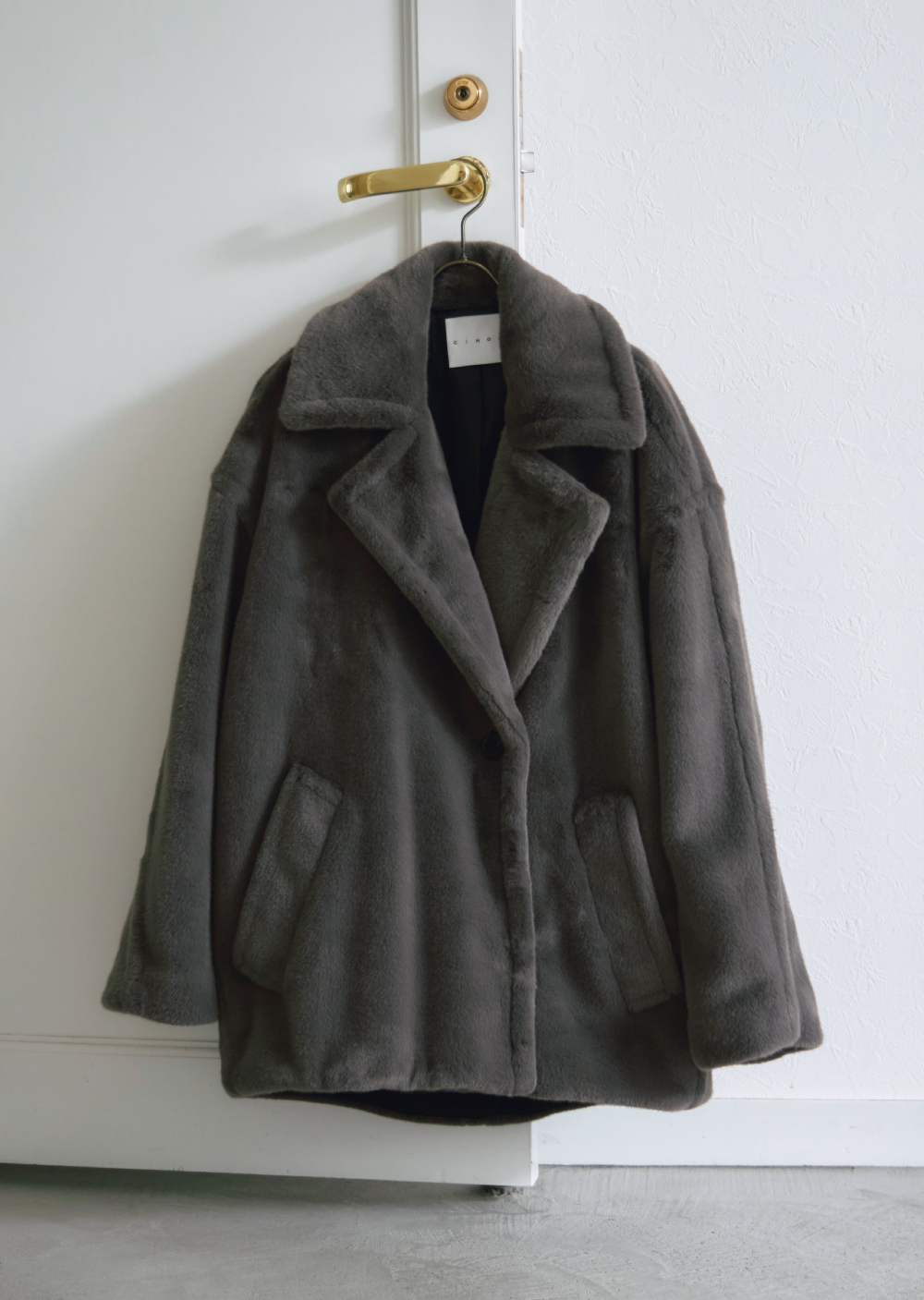 高いクオリティで作られたフェイクムートンは、ケープのようなゆったりとした分量感で、リアルでは表現できないようなシルエットが魅力。