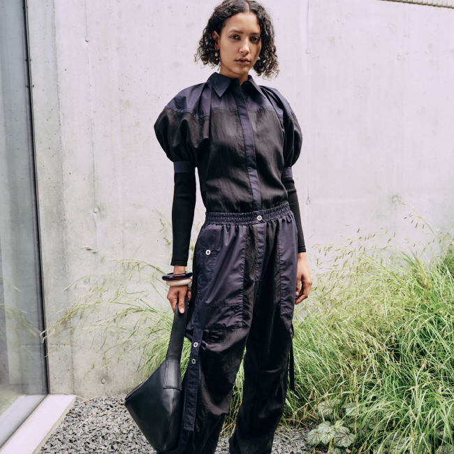 スカート、ワンピース、ボンバー ジャケット、オーバーサイズ ニット、カラフルなファーやシアリング、シグネチャーとなったパシュリ シリーズのハンドバッグには、奇抜なフェミニティとスマートでシックなストリートウェアが、バランスよく共存しています。同様に、意外性のあるグラフィック、パターン、色使いは、「今」を表現する現代的なアイテムに刺激的でロマンティックな要素をもたらしています。 決して過度にならず、しかし常に関心を引き付ける Lim のウィメンズ ウェアは、若々しいエレガンスと個性的なスタイルをアピールします。