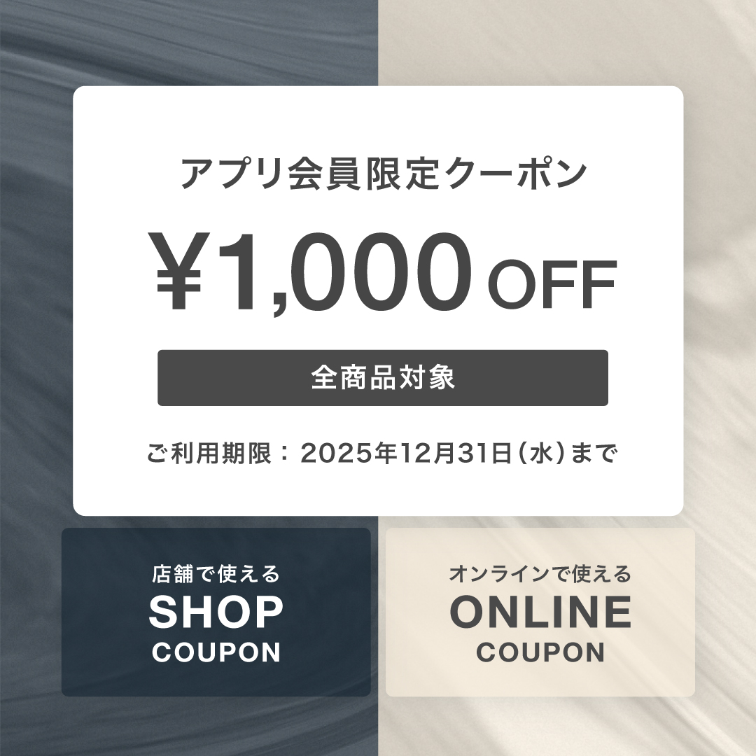 いつもPARIGOT公式アプリをご利用いただき誠にありがとうございます。日頃の感謝を込めまして、12月23日(火)~12月31日(水)の期間、アプリ会員限定で全商品にご利用いただける1,000円クーポンをプレゼントいたします。特別なこの機会に、秋冬の新作アイテムのお買い物をお楽しみくださいませ。