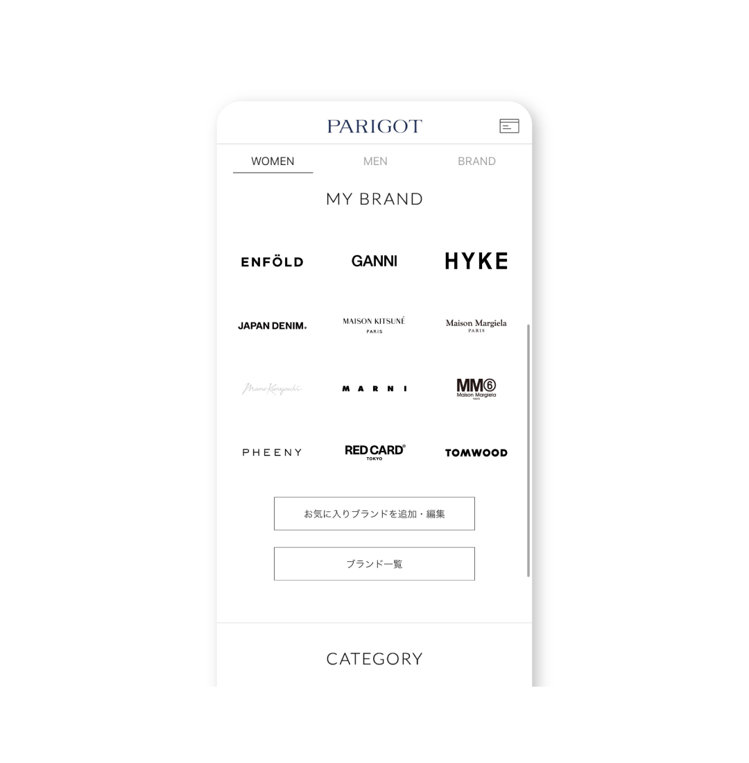 お好きなブランドをマイブランドに登録することで、いつでもマイブランドの商品一覧にアクセスできます。マイブランド登録すると、新作アイテムの入荷情報もお届けいたします。
