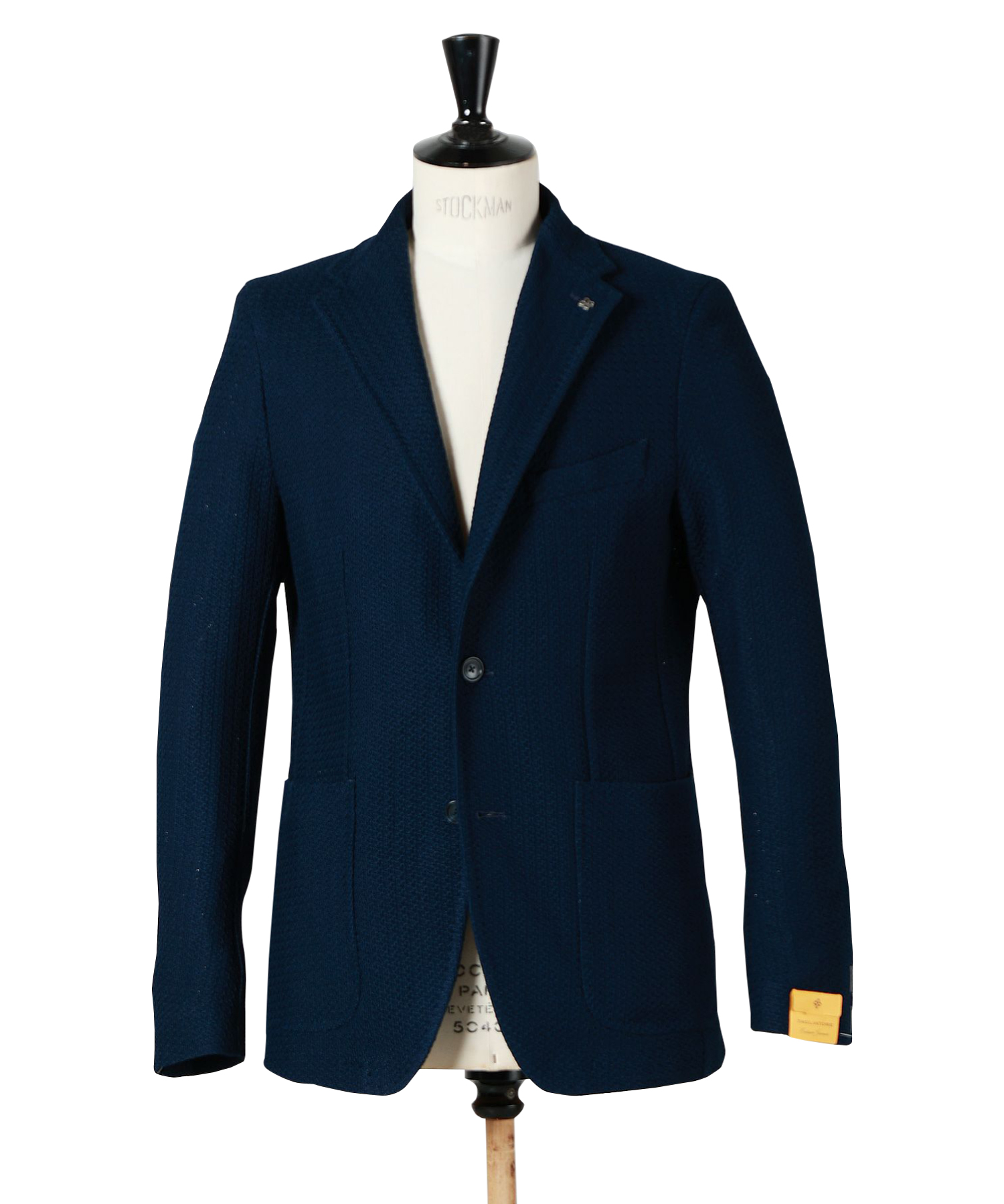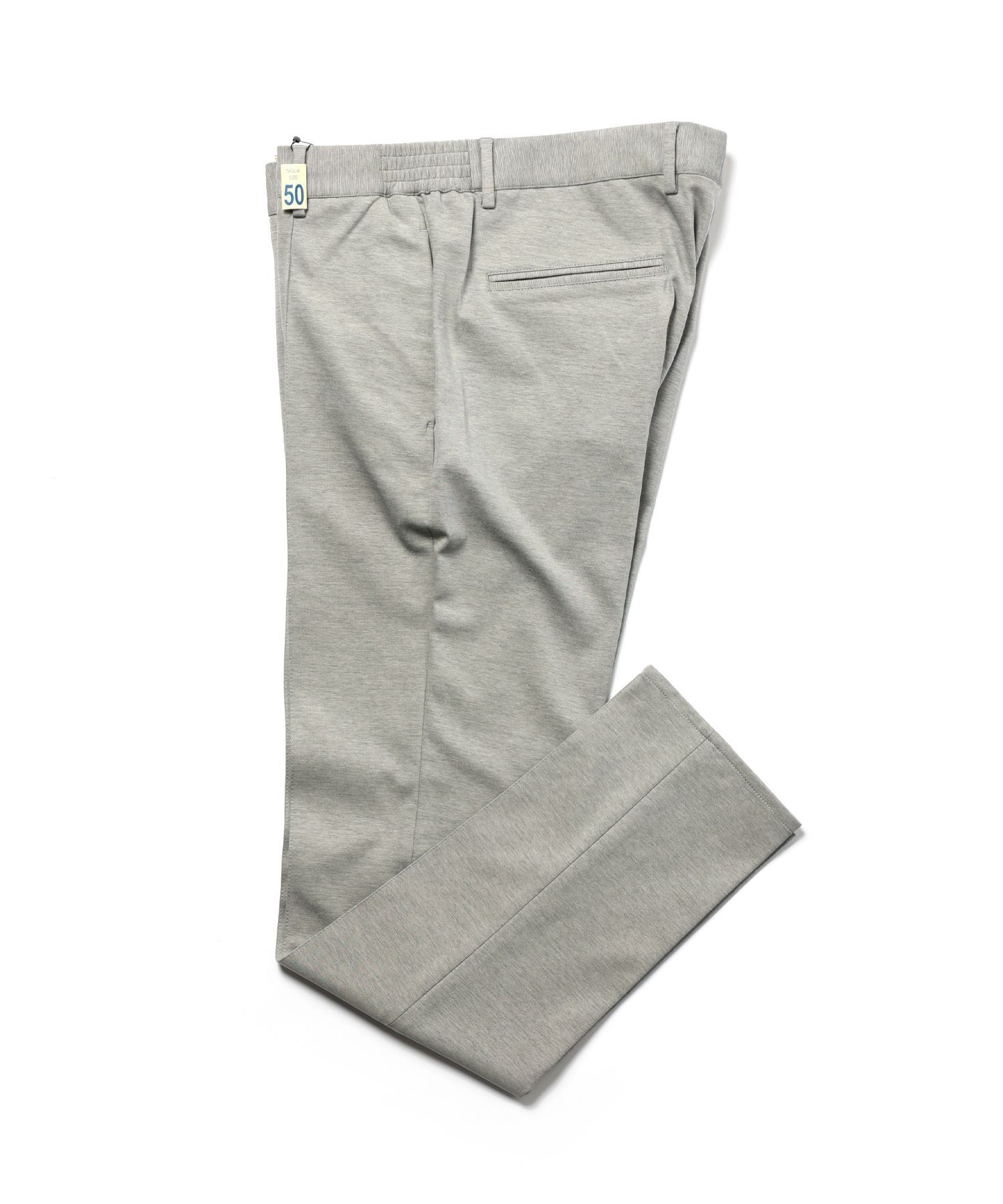 独特な織柄が魅力のジャージージャケットは、〈タリアトーレ〉のオリジナル素材。綿100%ながら高い伸縮性を誇り、快適な着心地を実現。ライトカラーのニットと合わせることで、品のあるリラックス感とさり気ない優雅さを演出する。