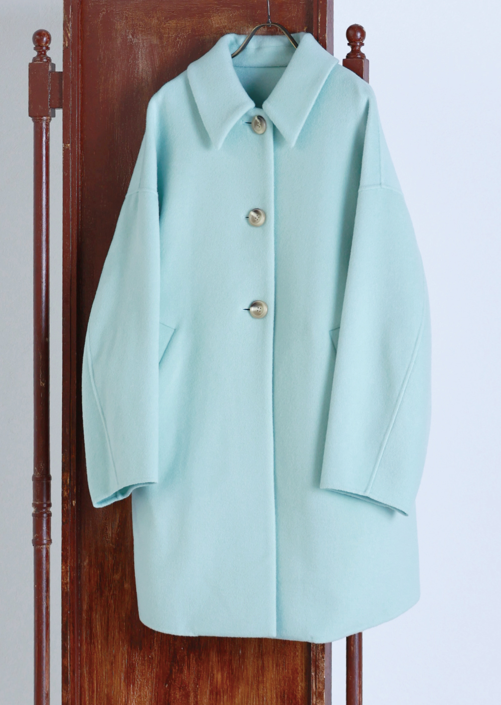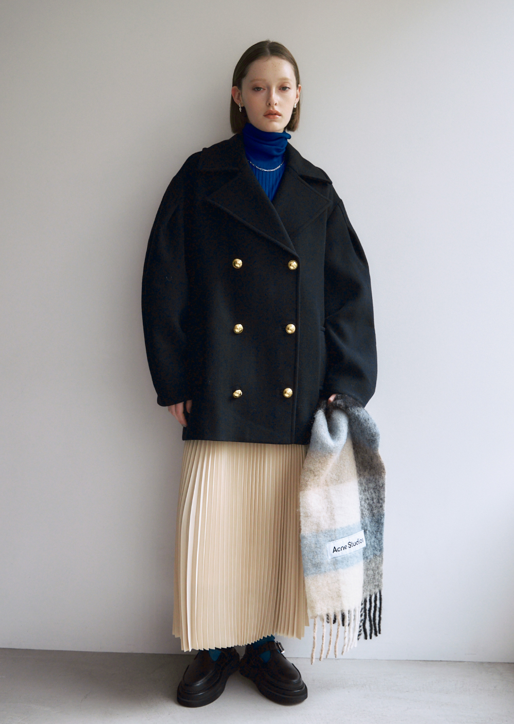 ゆったりしたボリュームスリーブとフォルムで、クラシカルピーコートにブランド独自の魅力を添えて。