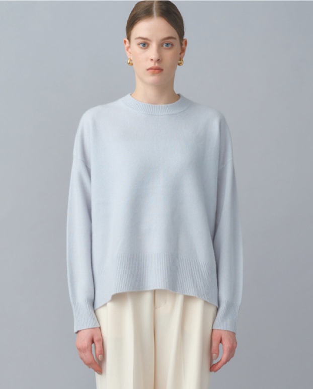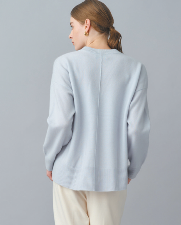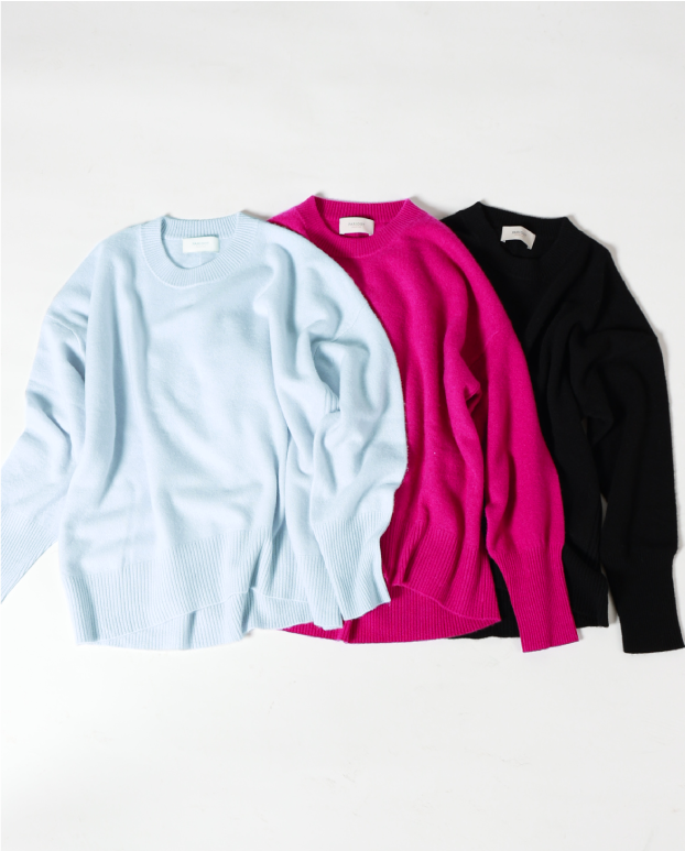 希少性の高い内モンゴル産の上質なカシミヤを100%使用して、独特な美しい光沢と滑らかな肌触り、保温性と吸湿性に優れたクルーネックニット。