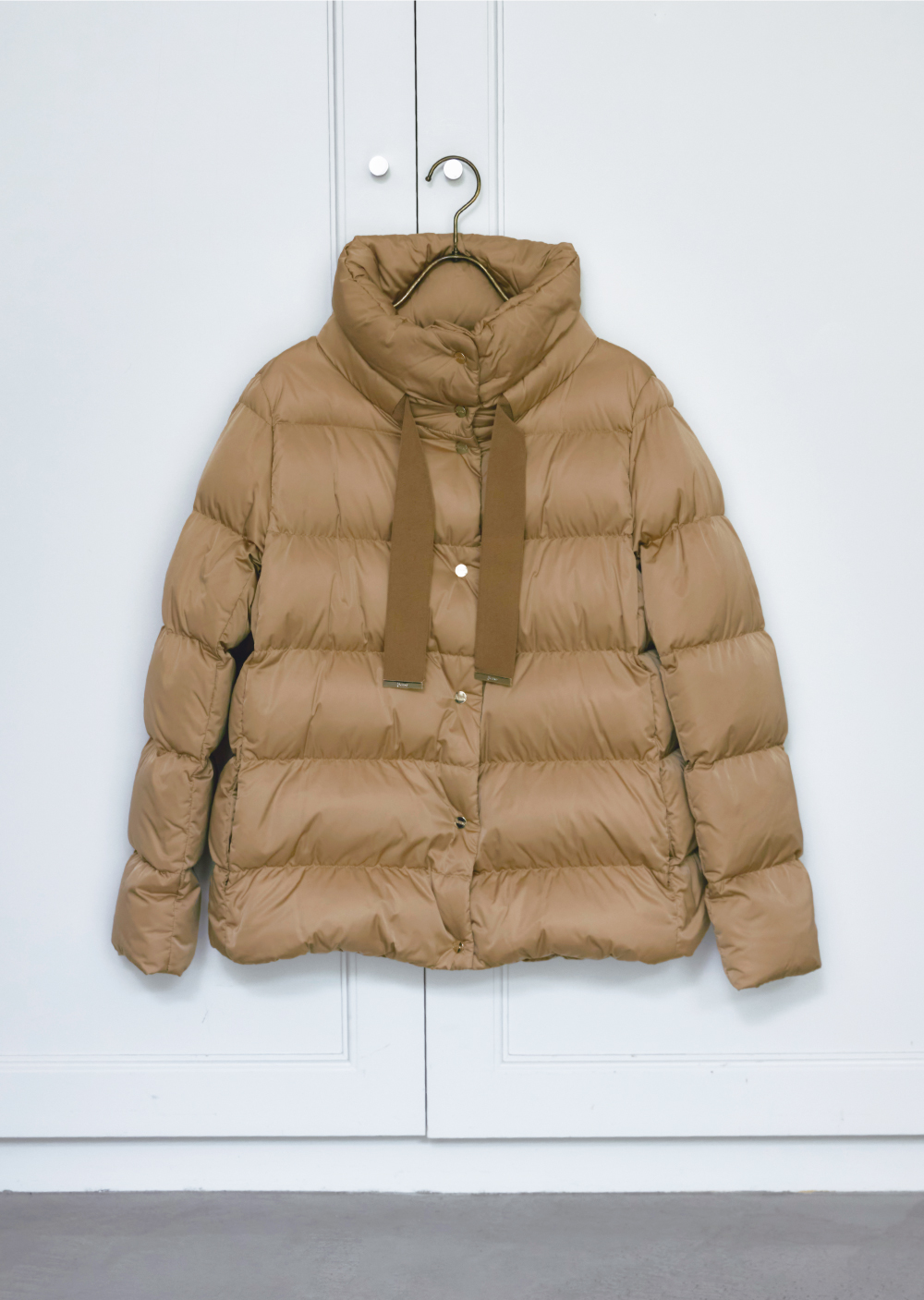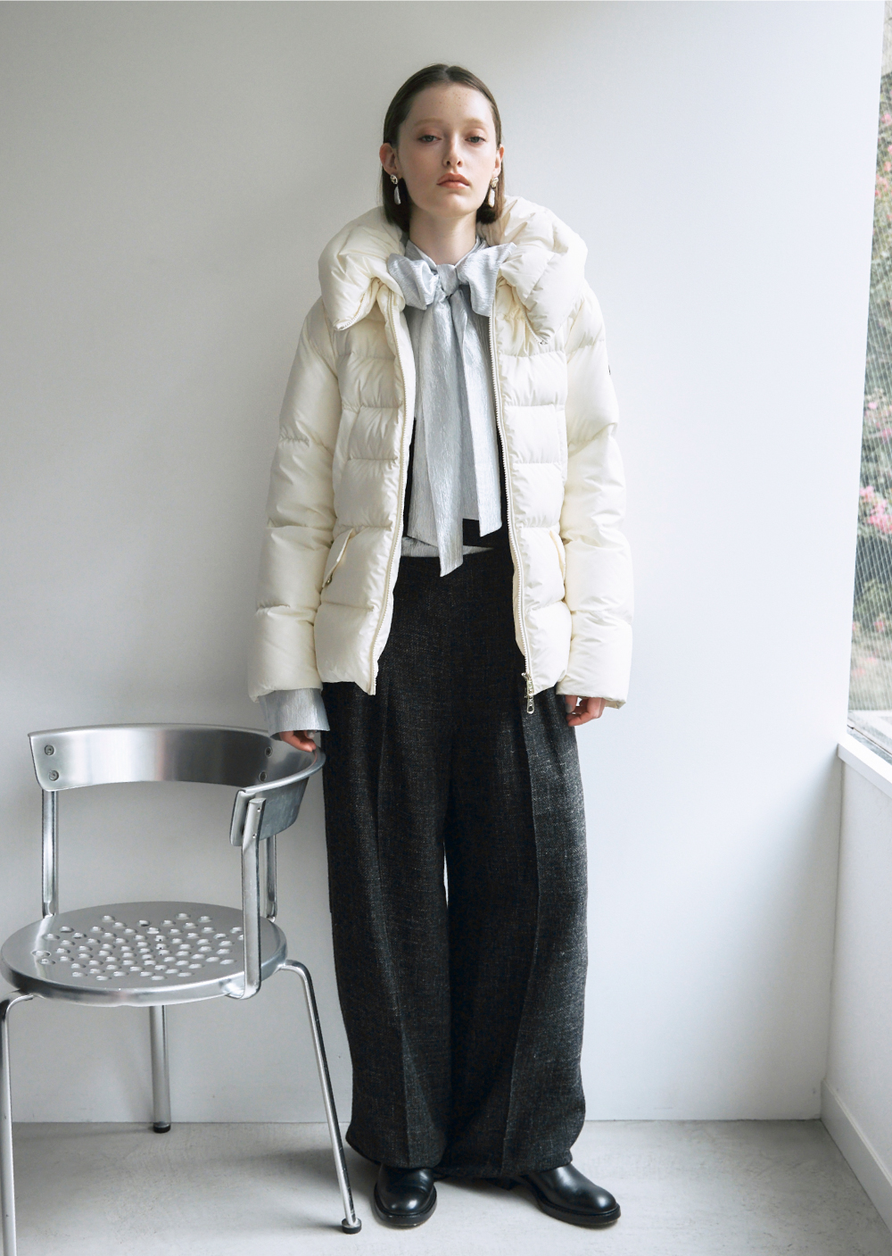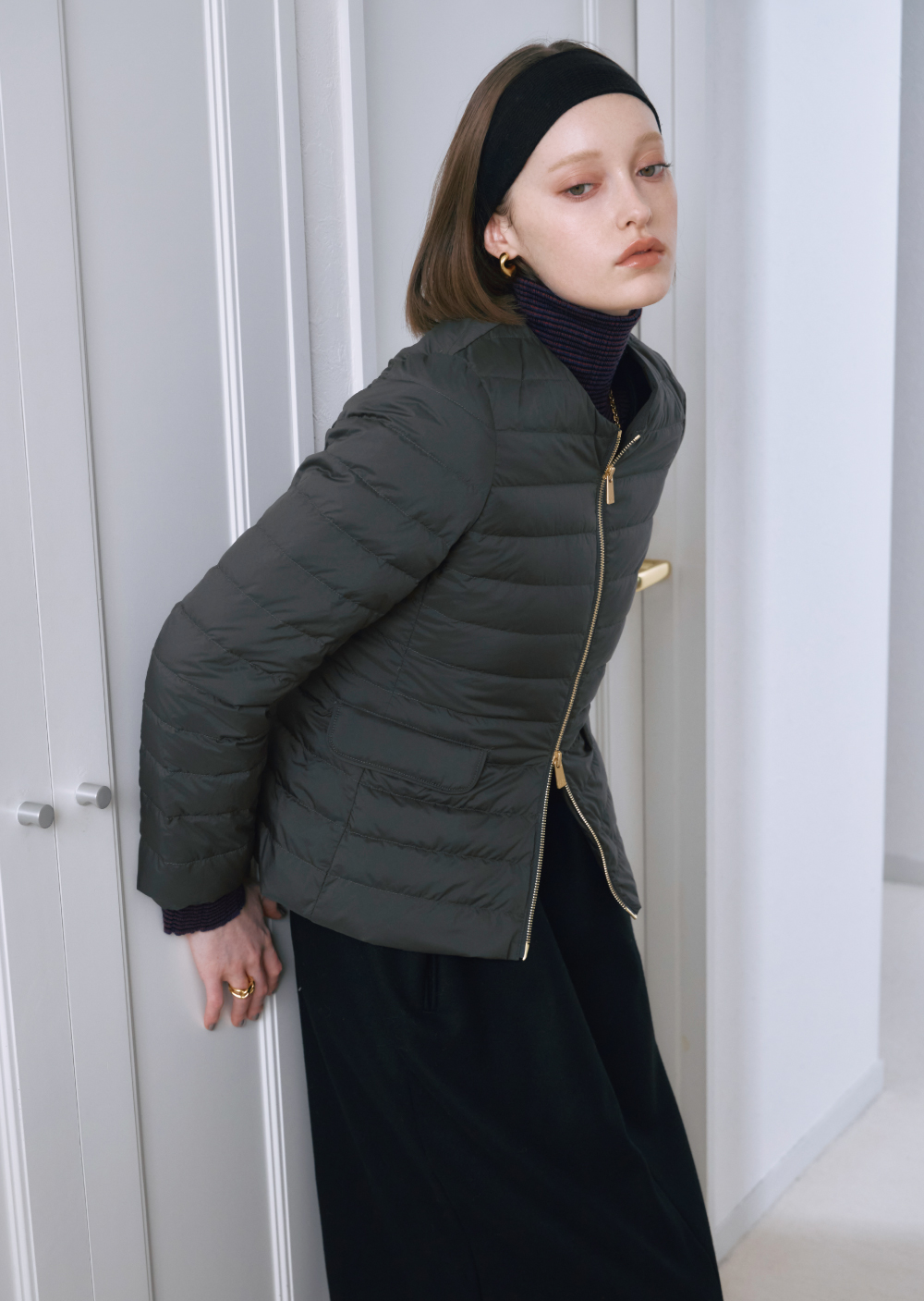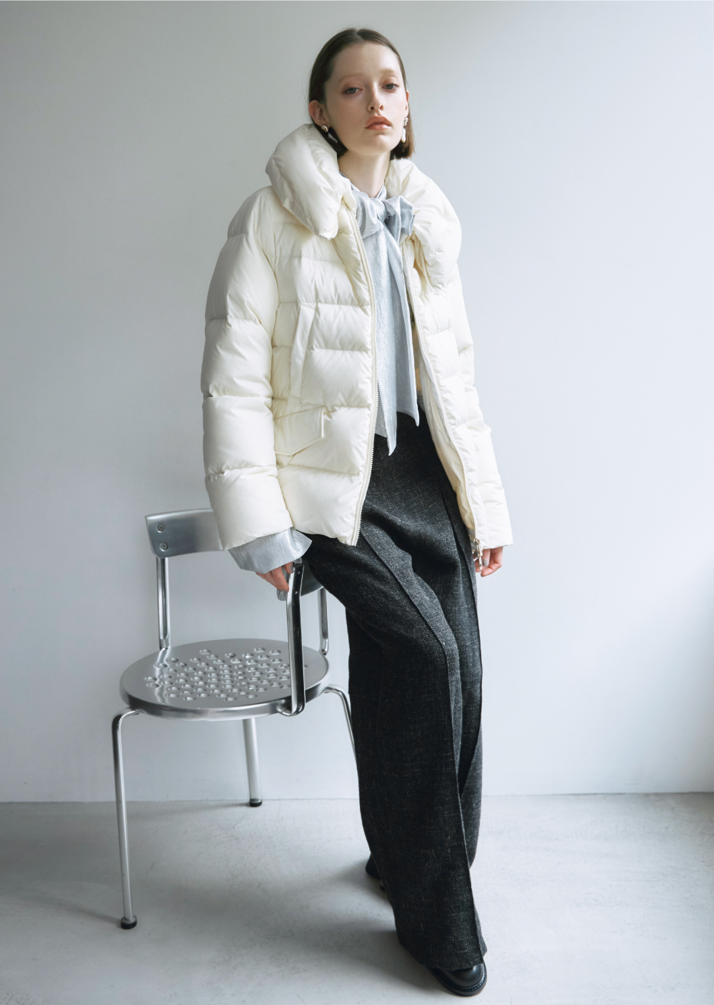 シンプルなワントーンのスタリングにはハイクオリティな機能性素材とミンク調の上品なエコファーを共存させたダウンコートで、クラス感を漂わせて。