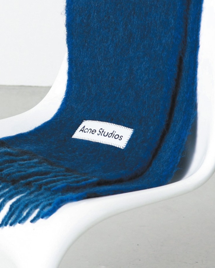 03. リッチなウールとモヘアブレンドのストール。フレーム編みとロゴ刺繍がアクセントに。AcneStudios / ¥47,300