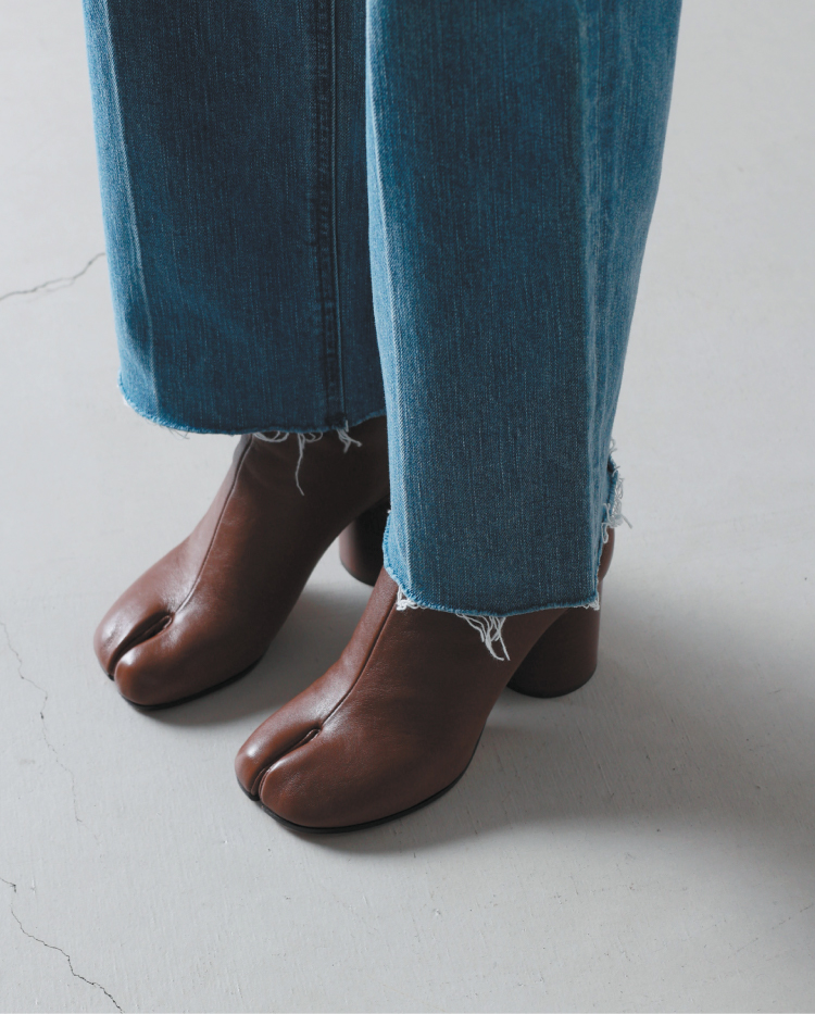 07. ブランドアイコンのタビブーツは今季はヴィンテージ感あるブラウンで足もとから感度の高さを演出。Maison Margiela / ¥204,600