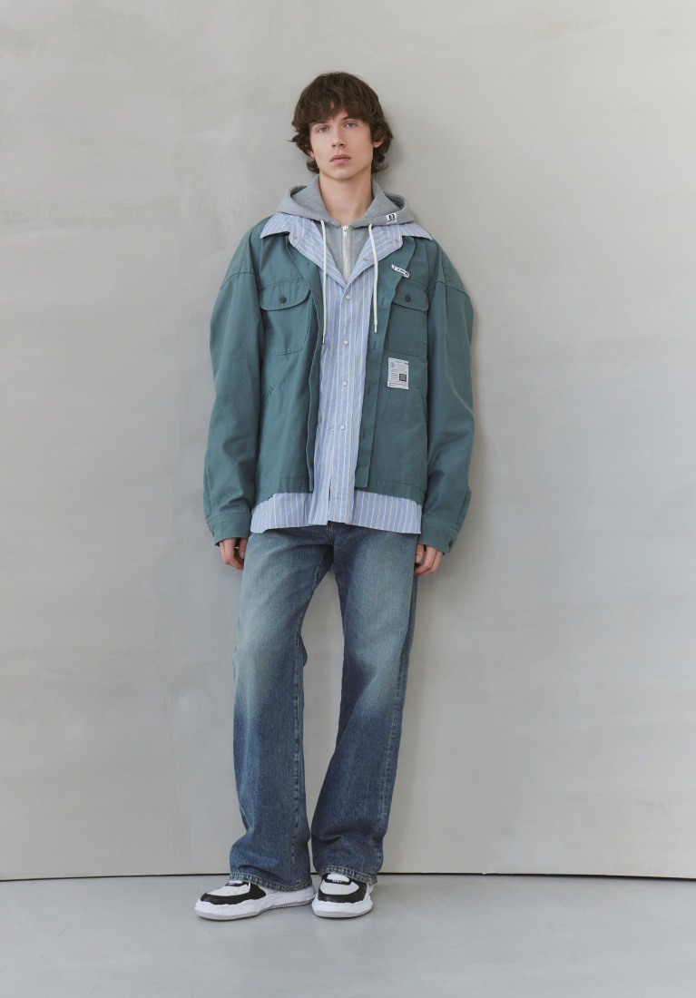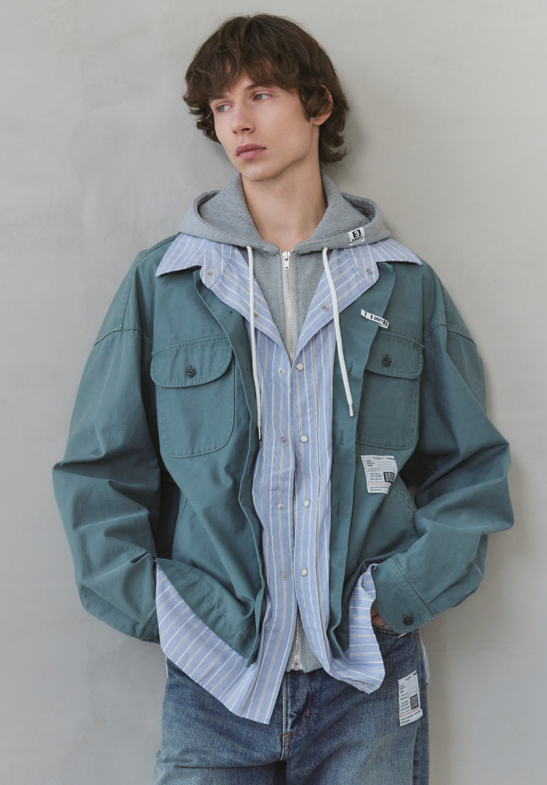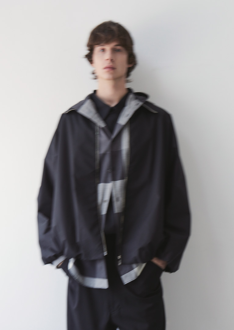シャツ、フーディー、ブルゾンを巧みにドッキングした、ブランドらしさが際立つ一着。レイヤードスタイルを一枚で表現し、シンプルなコーディネートでも装いを引き上げる、存在感と遊び心を併せ持つアイテム。