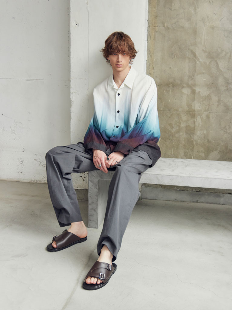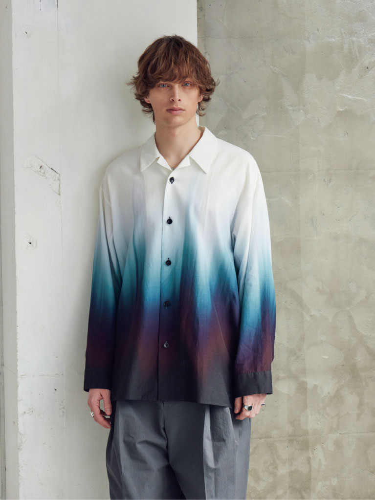 オリジナルのグラデーションプリントが印象的なシャツ。抜染によって生まれた独自のグラデーションが静かな奥行きを生み、装いにさりげない個性を添える。