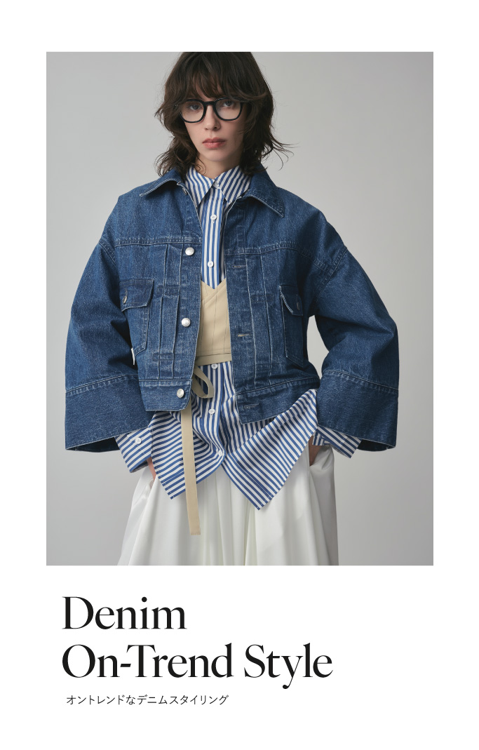 スタンダードな2ndタイプのデニムジャケット。ワイドスリーブ仕様でモダンな仕上がり。シャツのレイヤードでクラシカルな雰囲気がありながら、ゆるめボトムスで抜け感のあるスタイリングに。