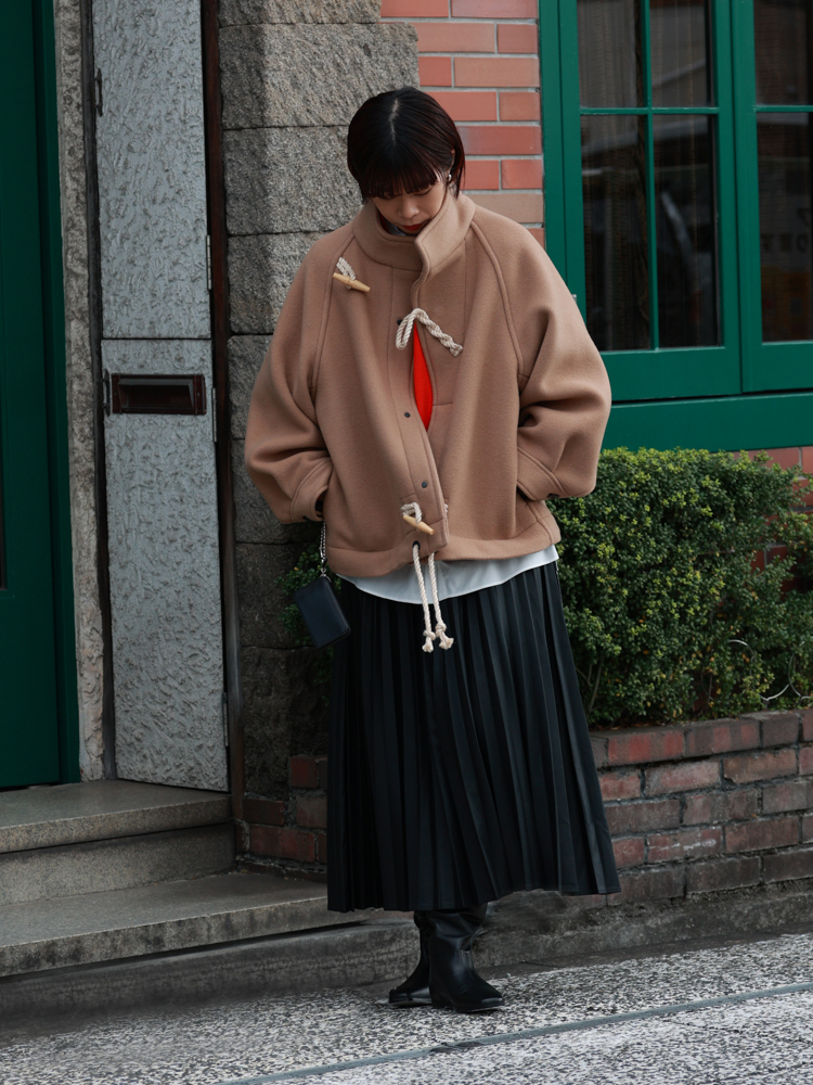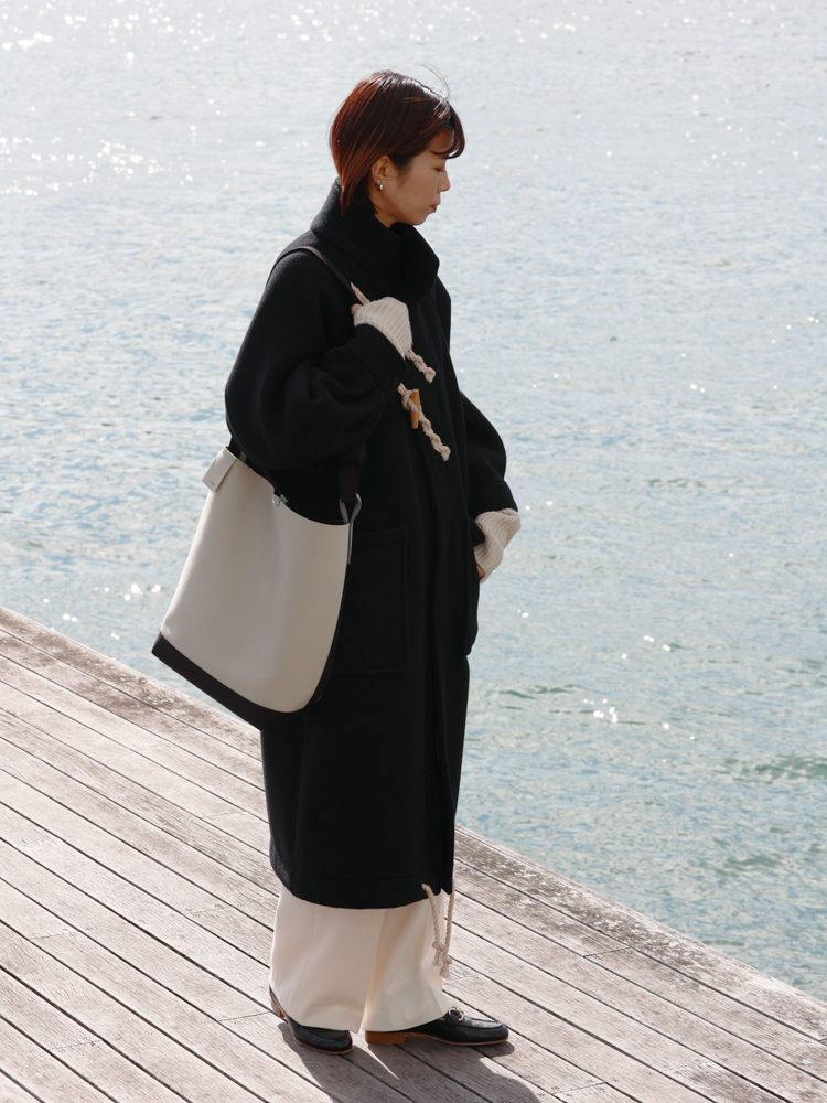 1950年代の海軍で使用されていたFEARNOUGHT SMOCKに着想を得て誕生した、HYKE(ハイク)のダッフルシリーズ。昨年も予約開始と同時に完売が続出するなど、多くのファッション愛好家から注目を集める人気アイテムです。ころんと愛らしいフォルムに、ぽわっとしたスリーブのシルエット、そして斜めに配されたトグルが生み出す絶妙なバランス感が魅力。 今回は、このシリーズのジャケットとコートを使った、デイリーに取り入れやすいスタイリングをご提案。オンにもオフにも活躍するコーディネートになっておりますので、ぜひ最後までご覧くださいませ。