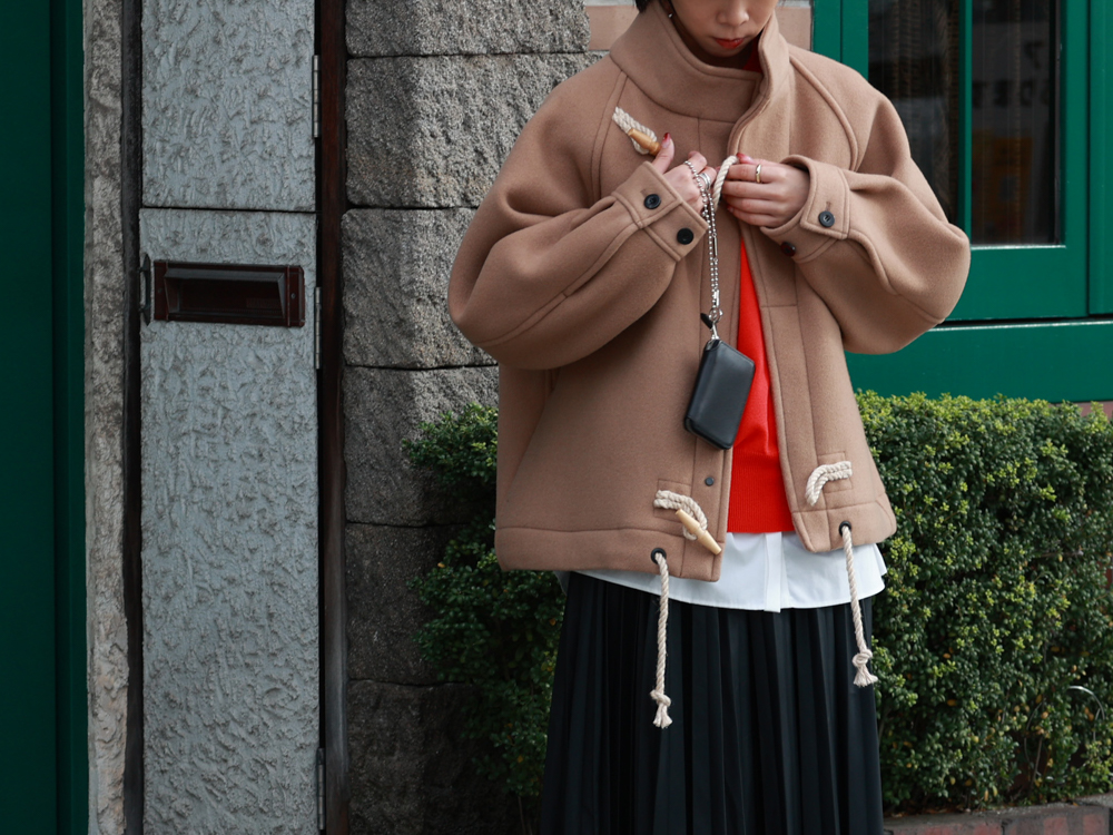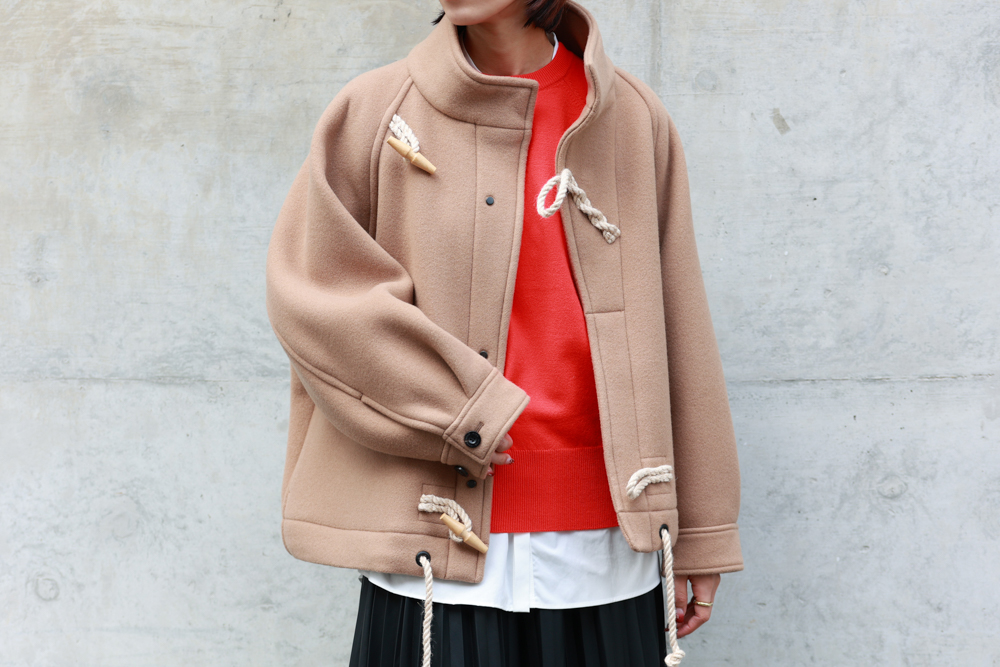 1950年代の海軍で使用されていたFEARNOUGHT SMOCKに着想を得て誕生した、HYKE(ハイク)のダッフルシリーズ。昨年も予約開始と同時に完売が続出するなど、多くのファッション愛好家から注目を集める人気アイテムです。ころんと愛らしいフォルムに、ぽわっとしたスリーブのシルエット、そして斜めに配されたトグルが生み出す絶妙なバランス感が魅力。 今回は、このシリーズのジャケットとコートを使った、デイリーに取り入れやすいスタイリングをご提案。オンにもオフにも活躍するコーディネートになっておりますので、ぜひ最後までご覧くださいませ。
