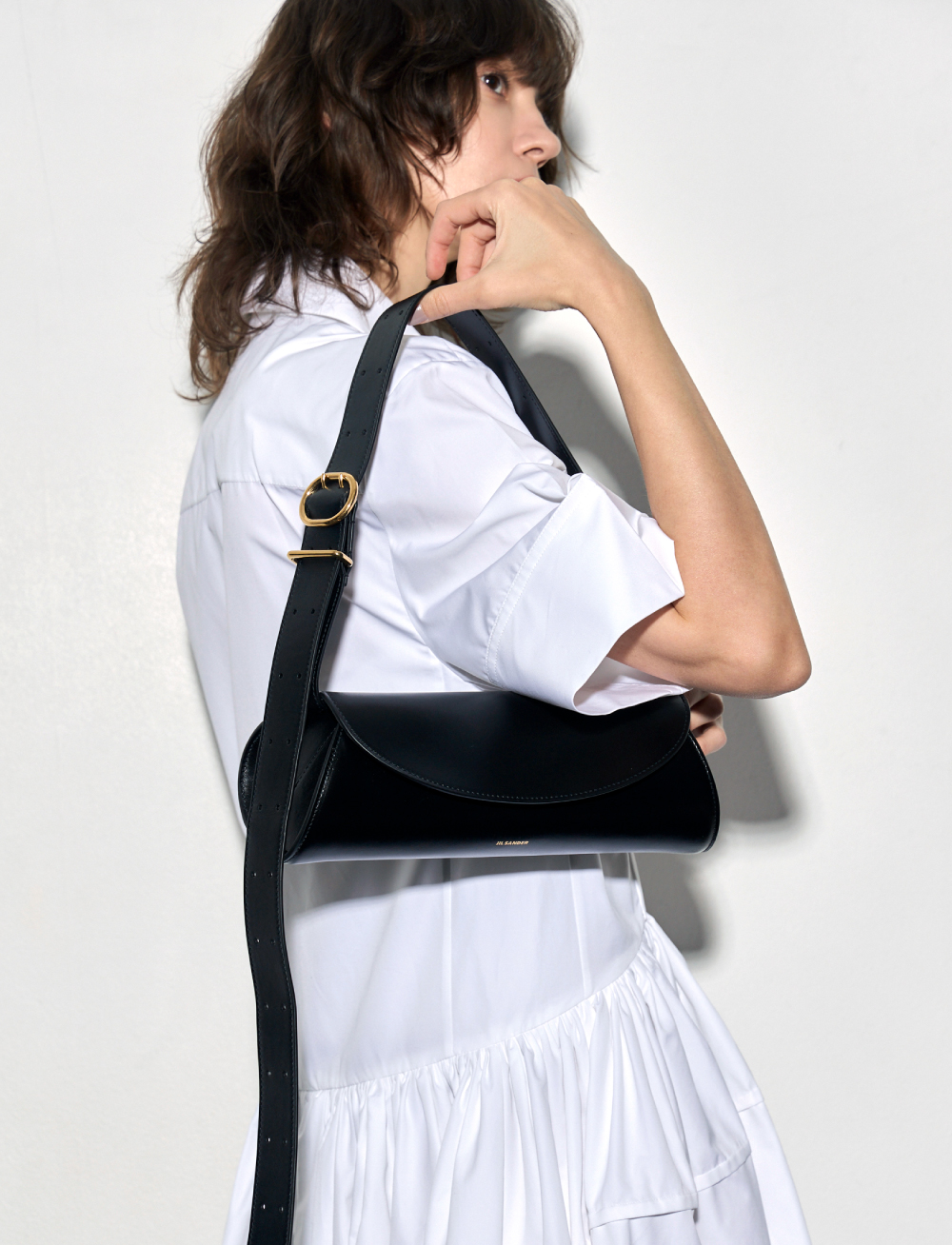 シチリアの伝統菓子、カンノーロから着想を得た筒状の独特なフォルムがアイコニックなバッグ。洗練されたデザインと実用性を兼ね備えている。