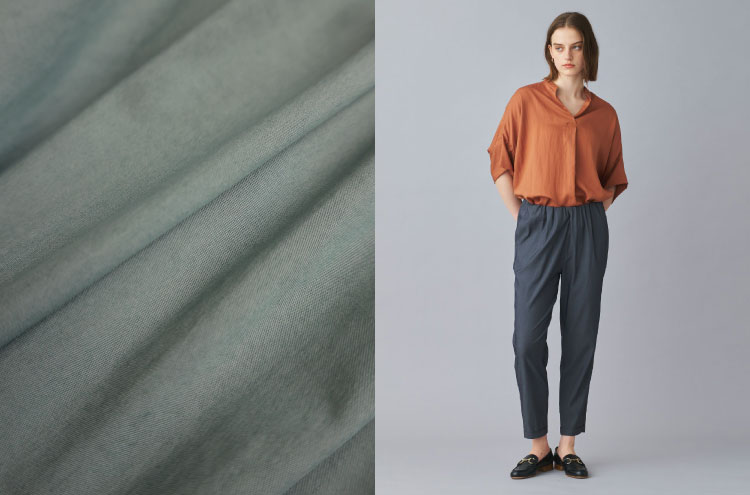 圧倒的リピート率を誇る 名品パンツ“マルシャルテル×パリゴのウエストギャザーパンツ”。美しいシルエット、快適な履き心地。3 種類の高品質素材からお選びいただけます。