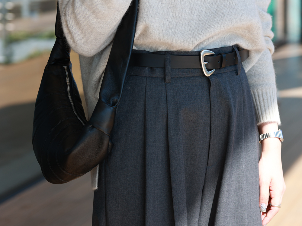ベルトループを太めに設定したデザインとなっているため、ハイウエストが苦手なストレート体型さんにも◎。こちらのパンツと今季トレンドのショート丈トップスを組み合わせて是非スタイリングしてみてください。パンツの美シルエットが際立つスタイリングが完成いたします。一方で、裾幅が程よく調整されているため、ビッグシルエットのトップスやロングのアウターとコーディネートの難なくこなします。