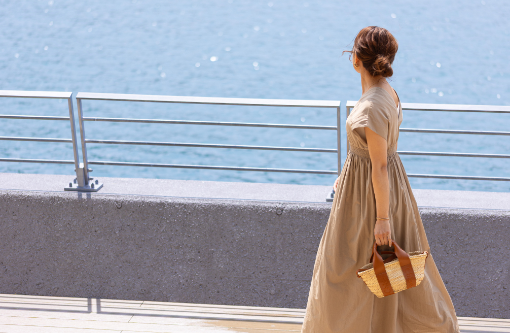 潮風に揺れるドレス、陽射しに映える軽やかなシルエット。非日常の時間に寄り添う3つのリゾートスタイルをご紹介。