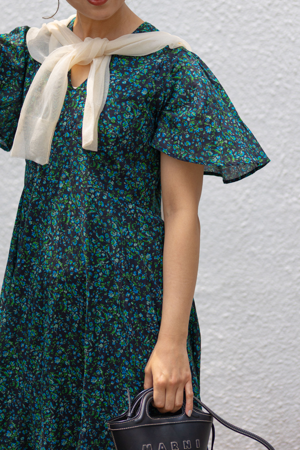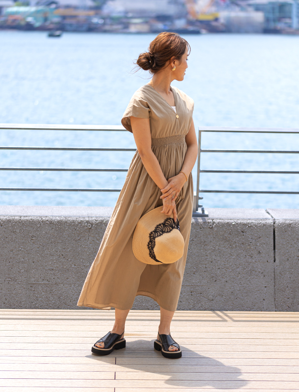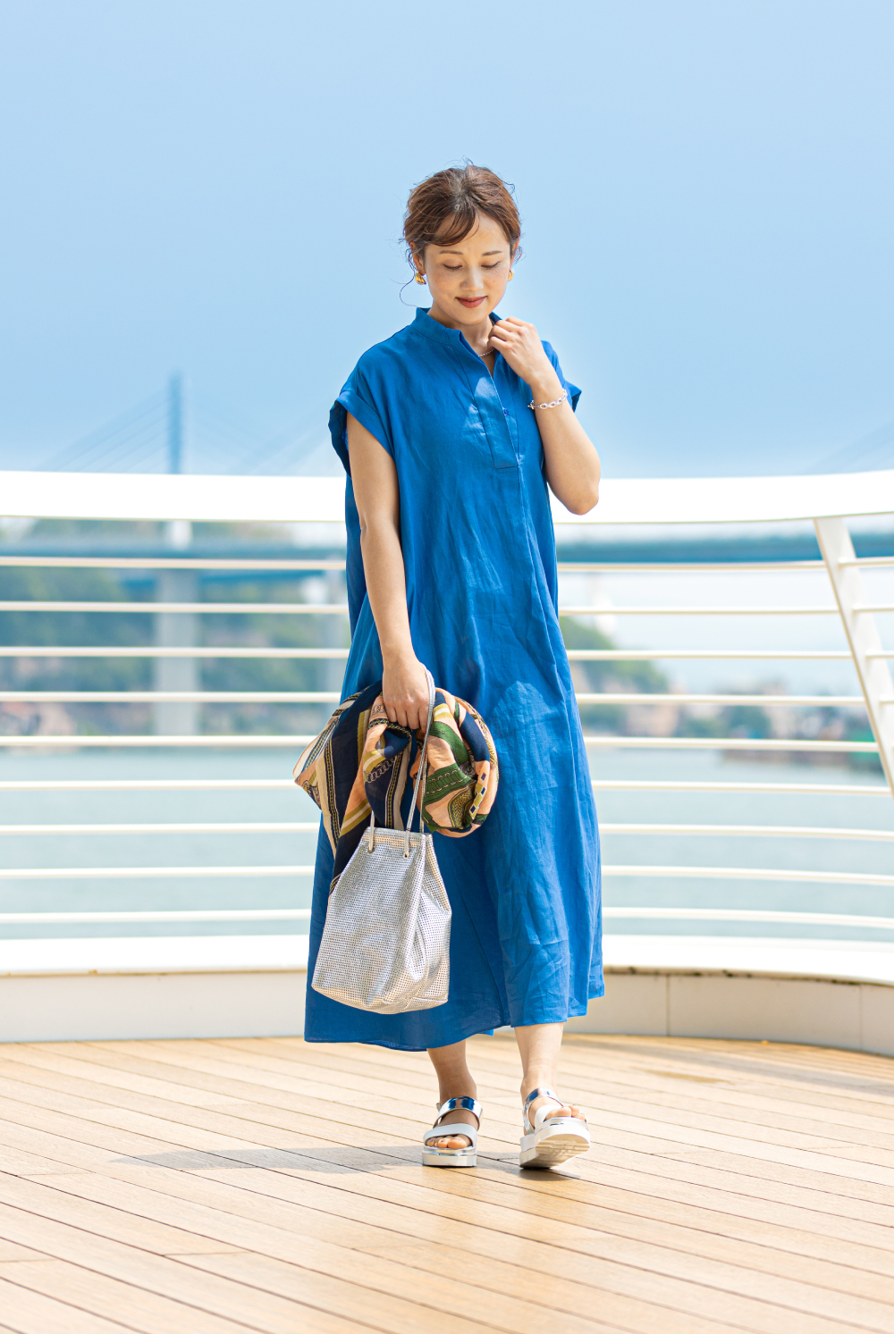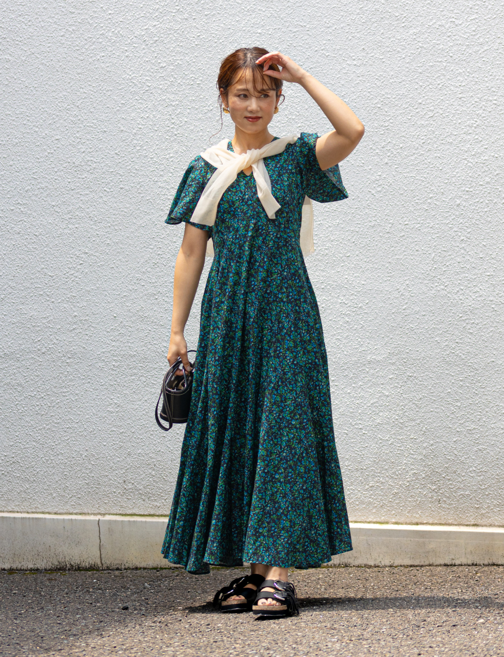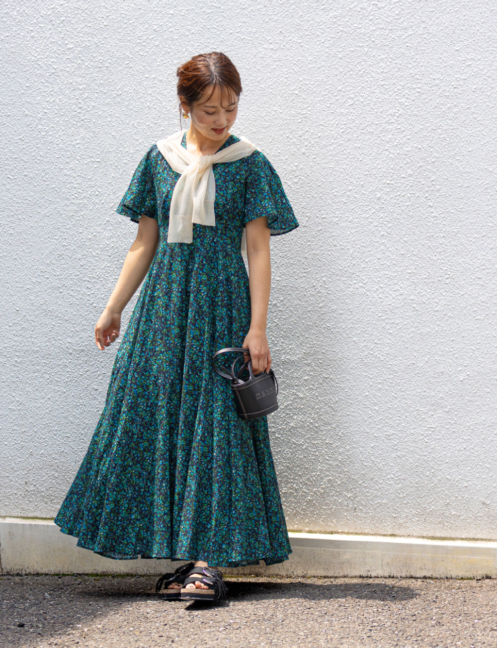 風を受けて揺れるシルエットが視線を惹きつけ、旅先でも日常でも自由に纏いたくなる一着で、華やかさと抜け感がほどよく共存した、心が弾む夏のドレススタイルに。