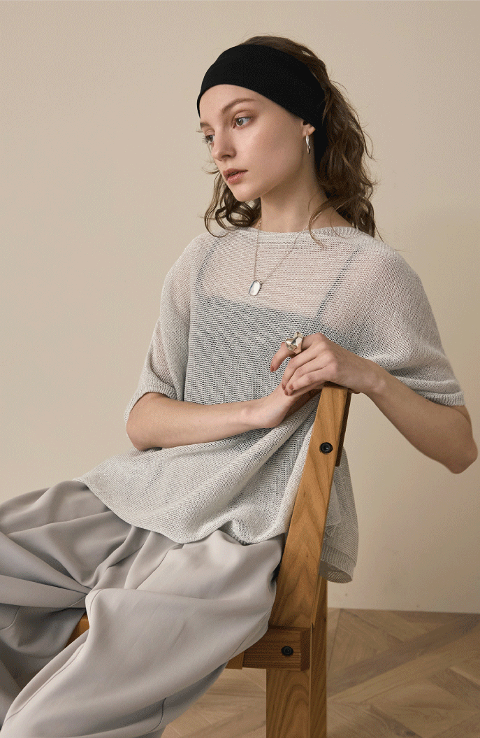 ラメ糸を織り交ぜたリラクシーなニットは、グレートーンなスタイリングで余裕のある装いに。ブラックやシルバーの小物でモードなアクセントを。