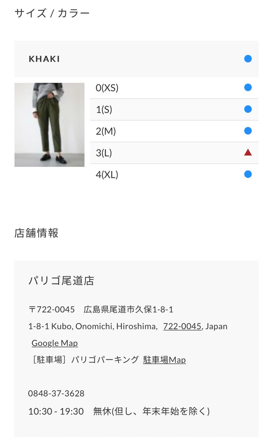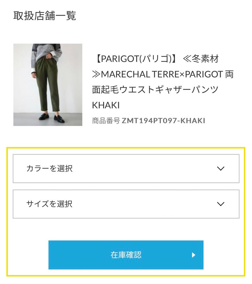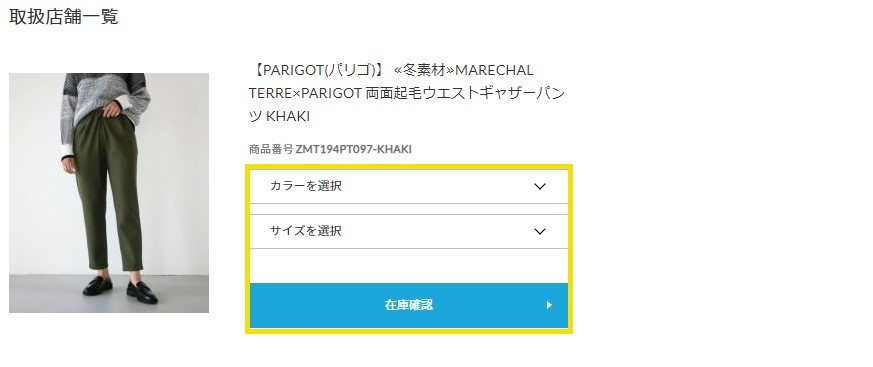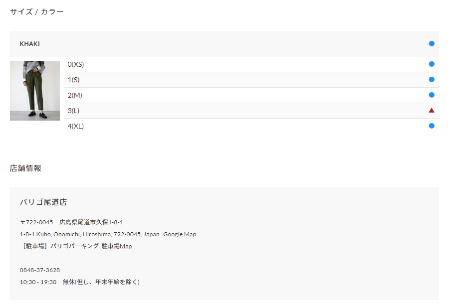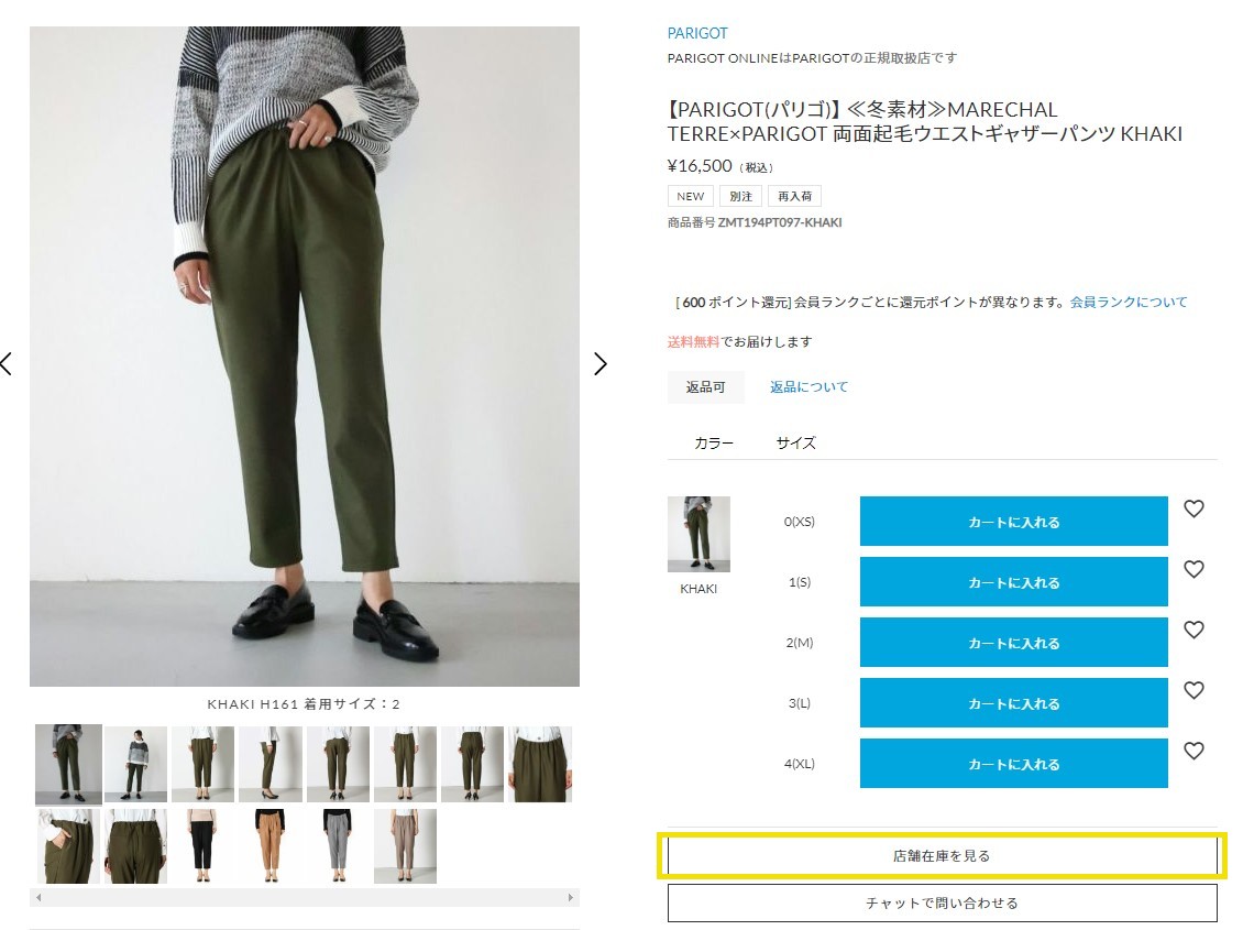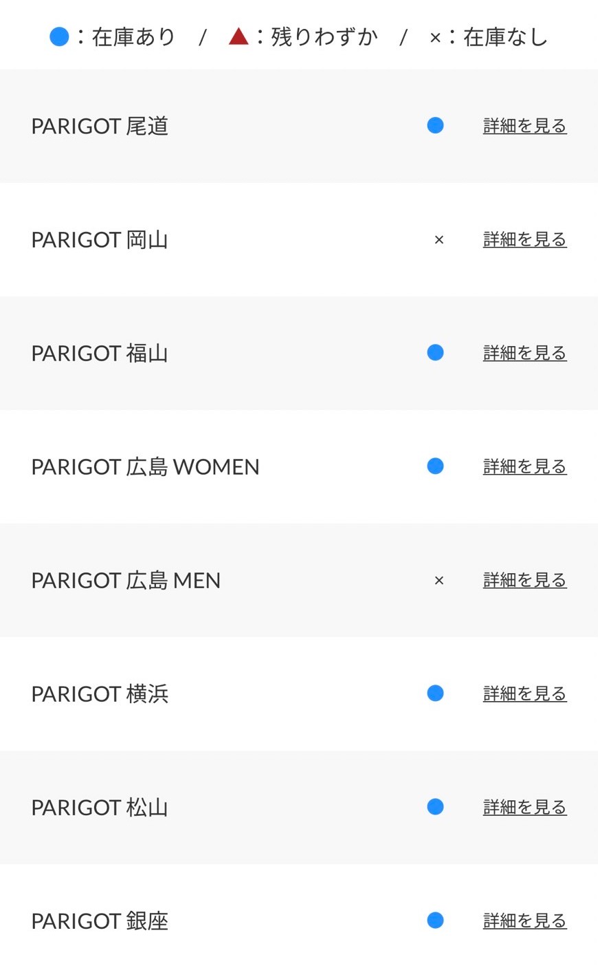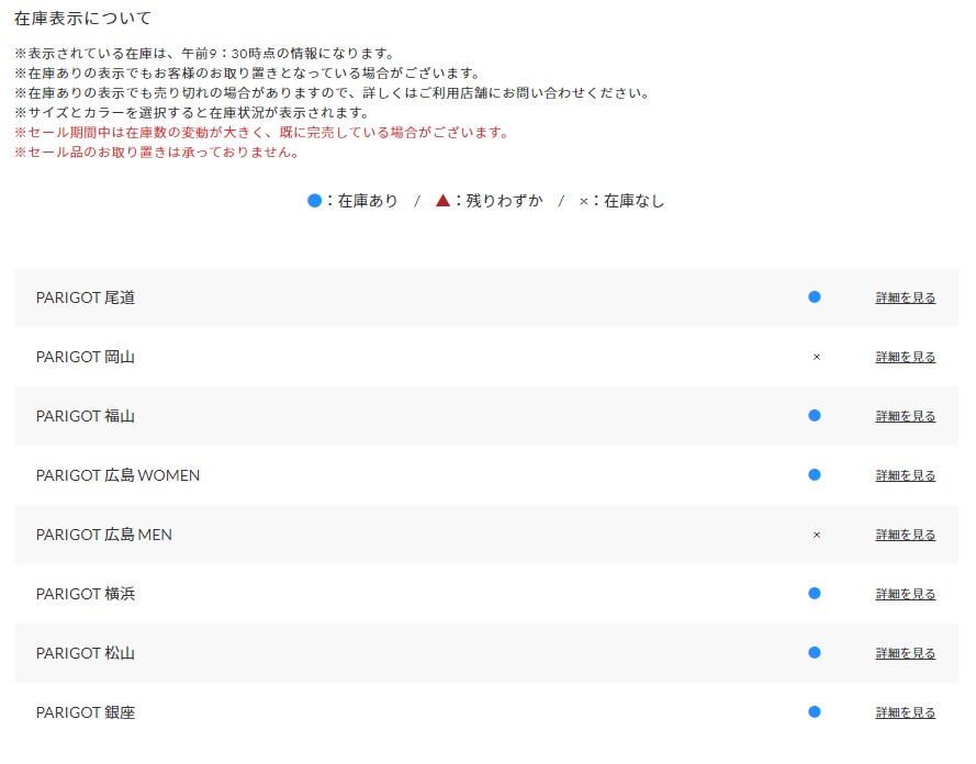 PARIGOT ONLINEの掲載アイテムの店舗在庫の状況が確認をすることができます。