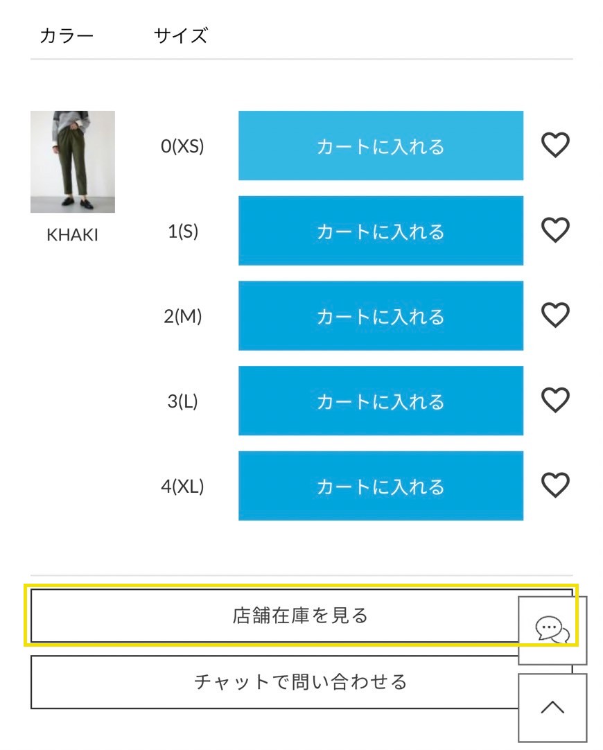 ①商品ページにて「店舗在庫を見る」のボタンをクリックする