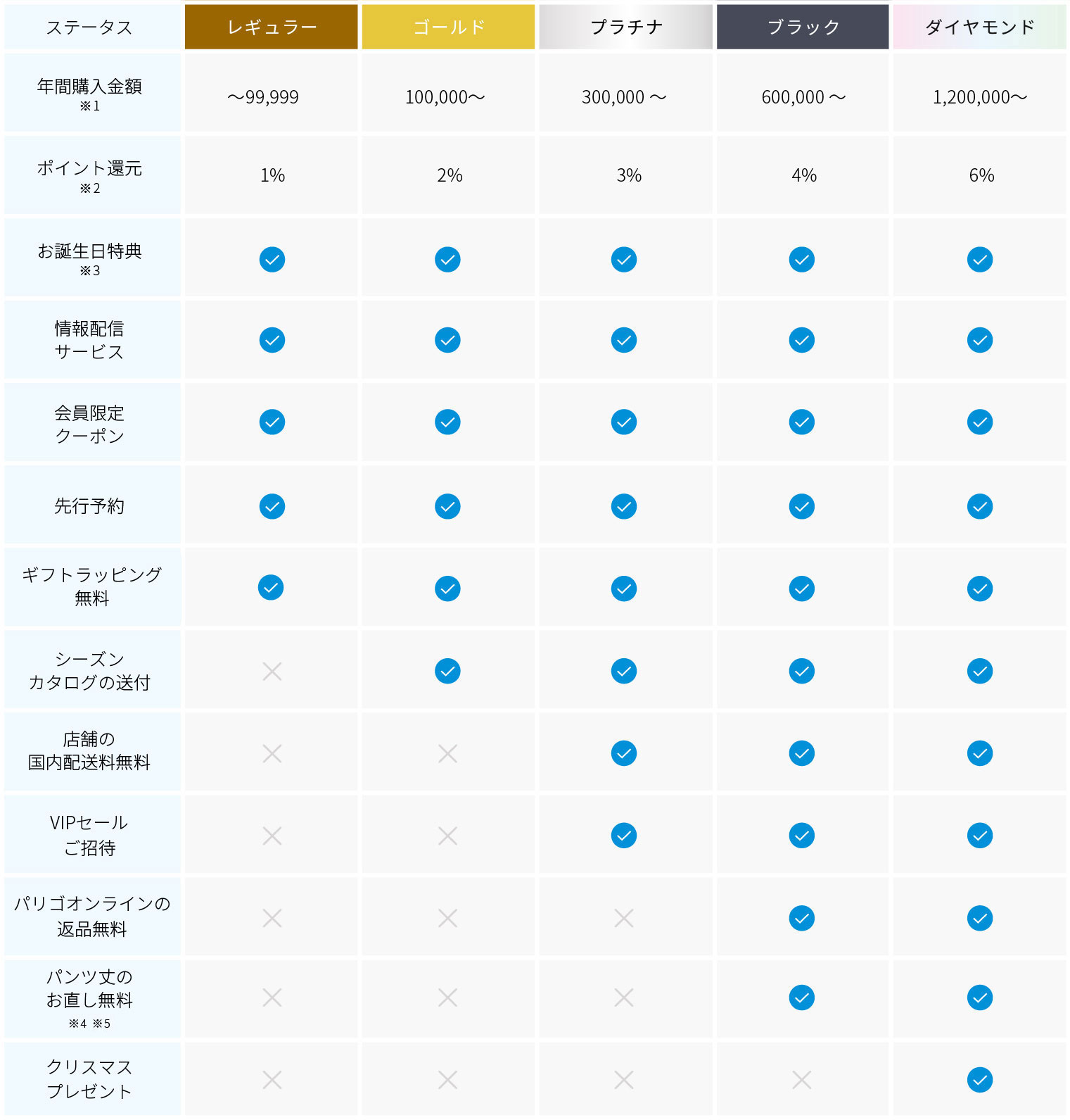 ※3 店舗・パリゴオンライン共通:お誕生月にお買い物にご利用いただけるポイントをプレゼントします。お誕生日ポイント付与はお誕生日月の前月最終日時点にご登録のある方のステータスを元に配布しております。