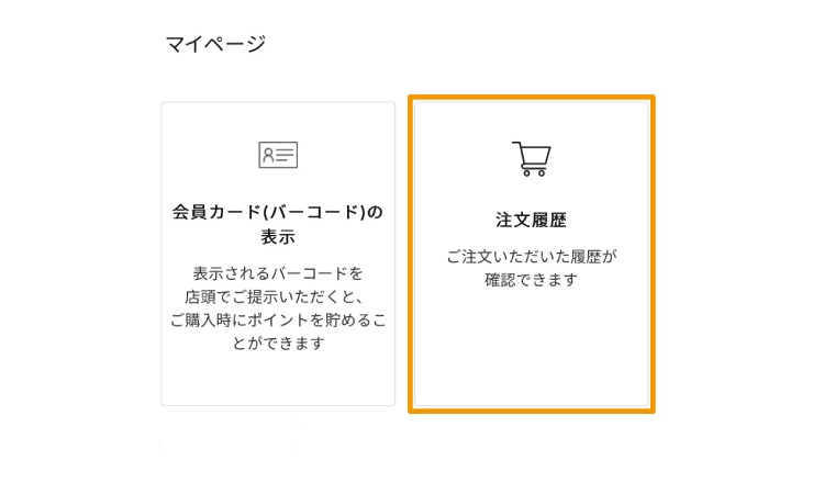 STEP1:マイページ内「注文履歴」より過去の注文を確認。